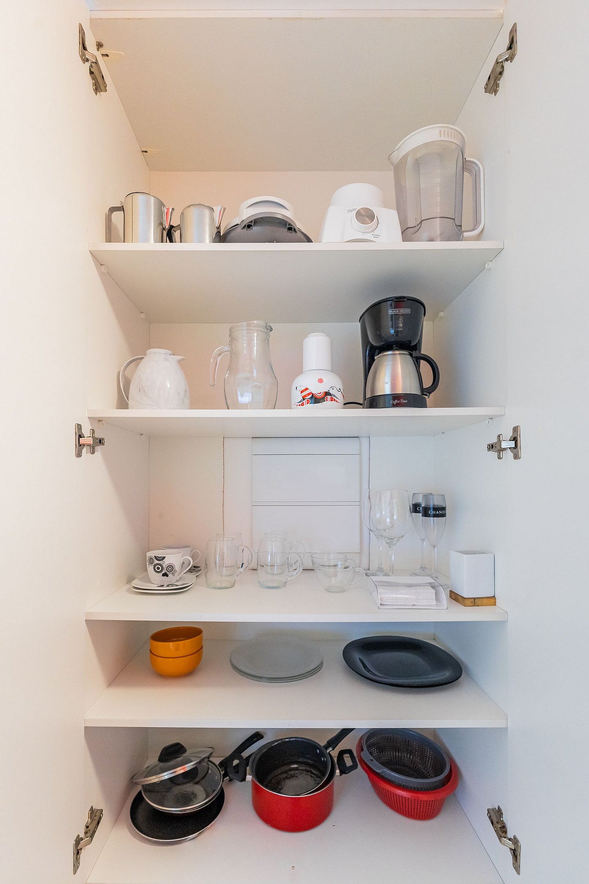 A cozinha equipada com itens básicos permite o preparo de pequenas refeições, garantindo mais autonomia no dia a dia.