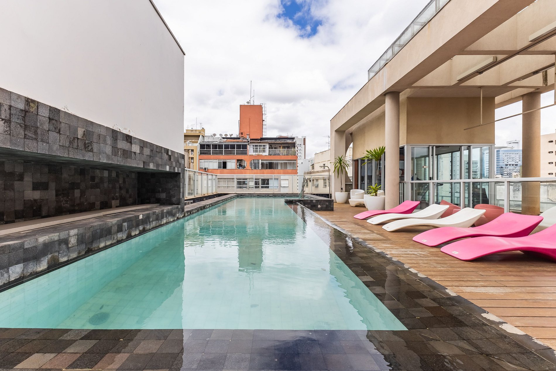 Nas áreas comuns, os hóspedes encontram opções completas para relaxar e aproveitar a estadia: piscina, academia equipada, lavanderia coletiva e espaços de convivência aconchegantes. O terraço com vista para a cidade proporciona momentos únicos de descanso em meio ao agito urbano.