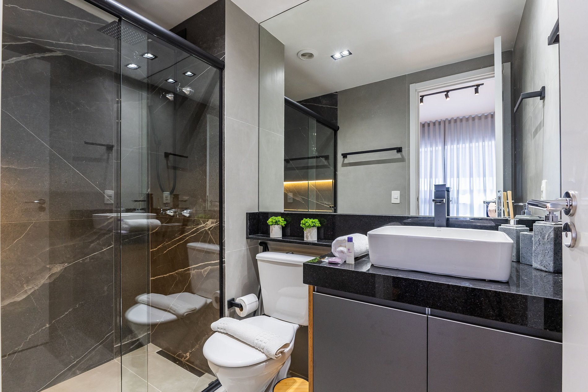 — Privada: Não jogue papel ou objetos pela privada. Multa de R$ 400,00 em caso de entupimento.