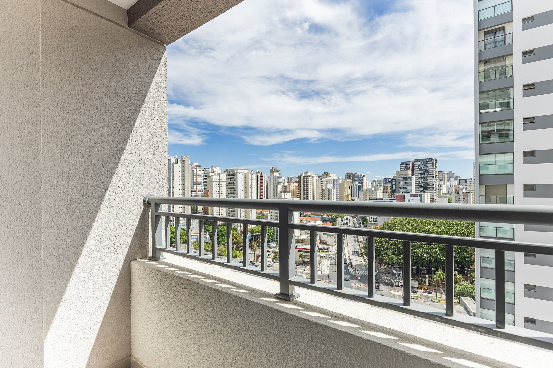 O apartamento também dispõe de ar-condicionado (somente refrigeração) e de uma varanda charmosa, que deixa o ambiente mais agradável com a entrada de luz natural.
