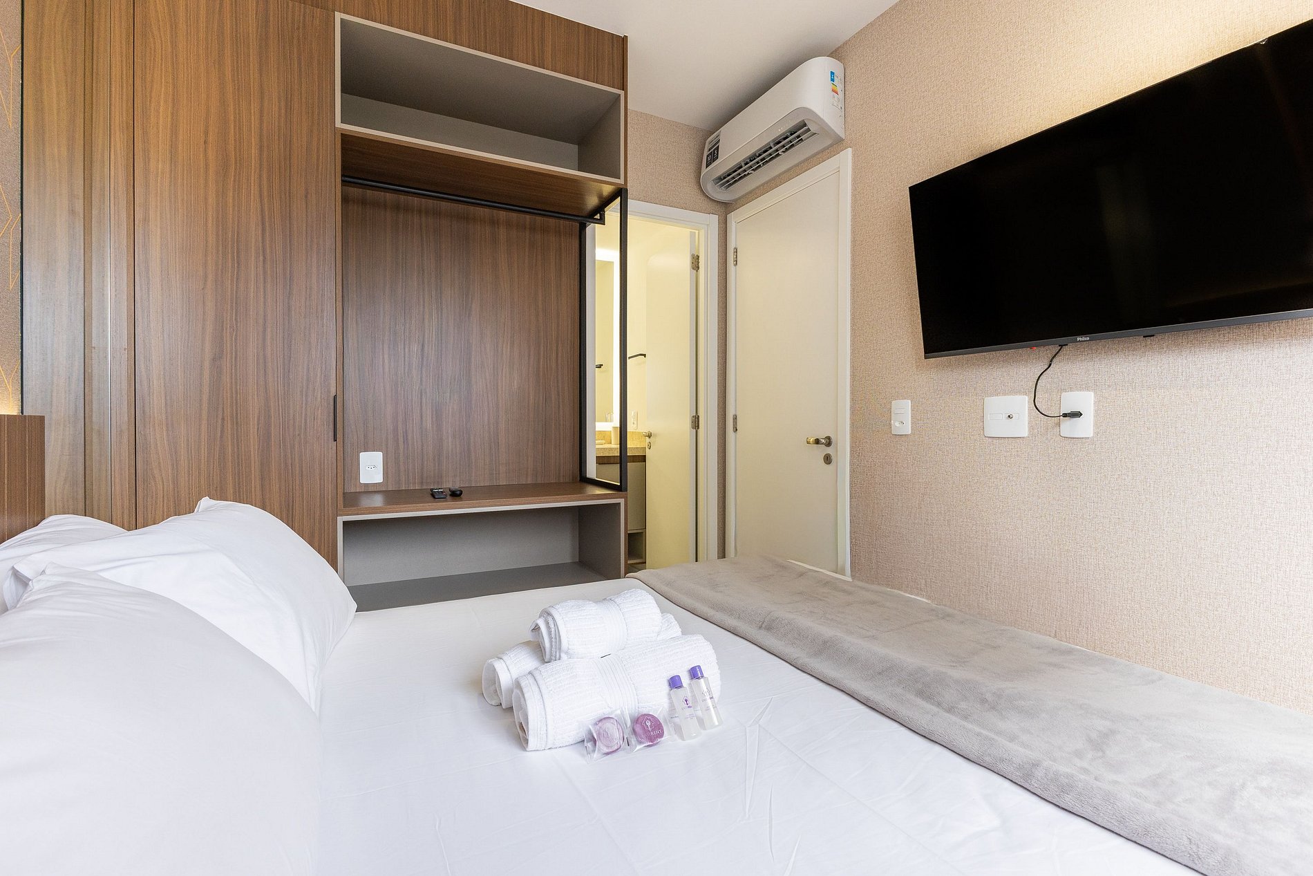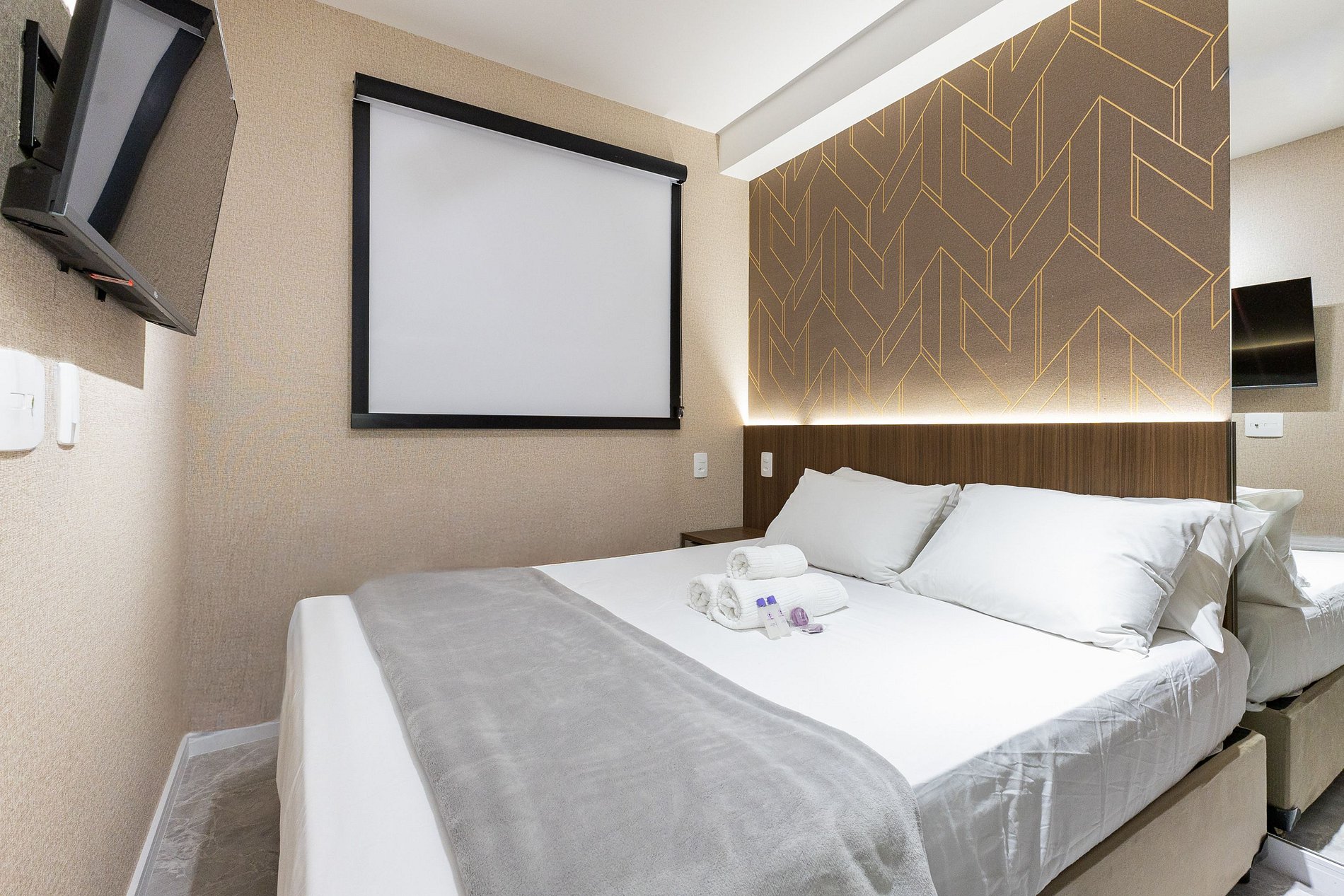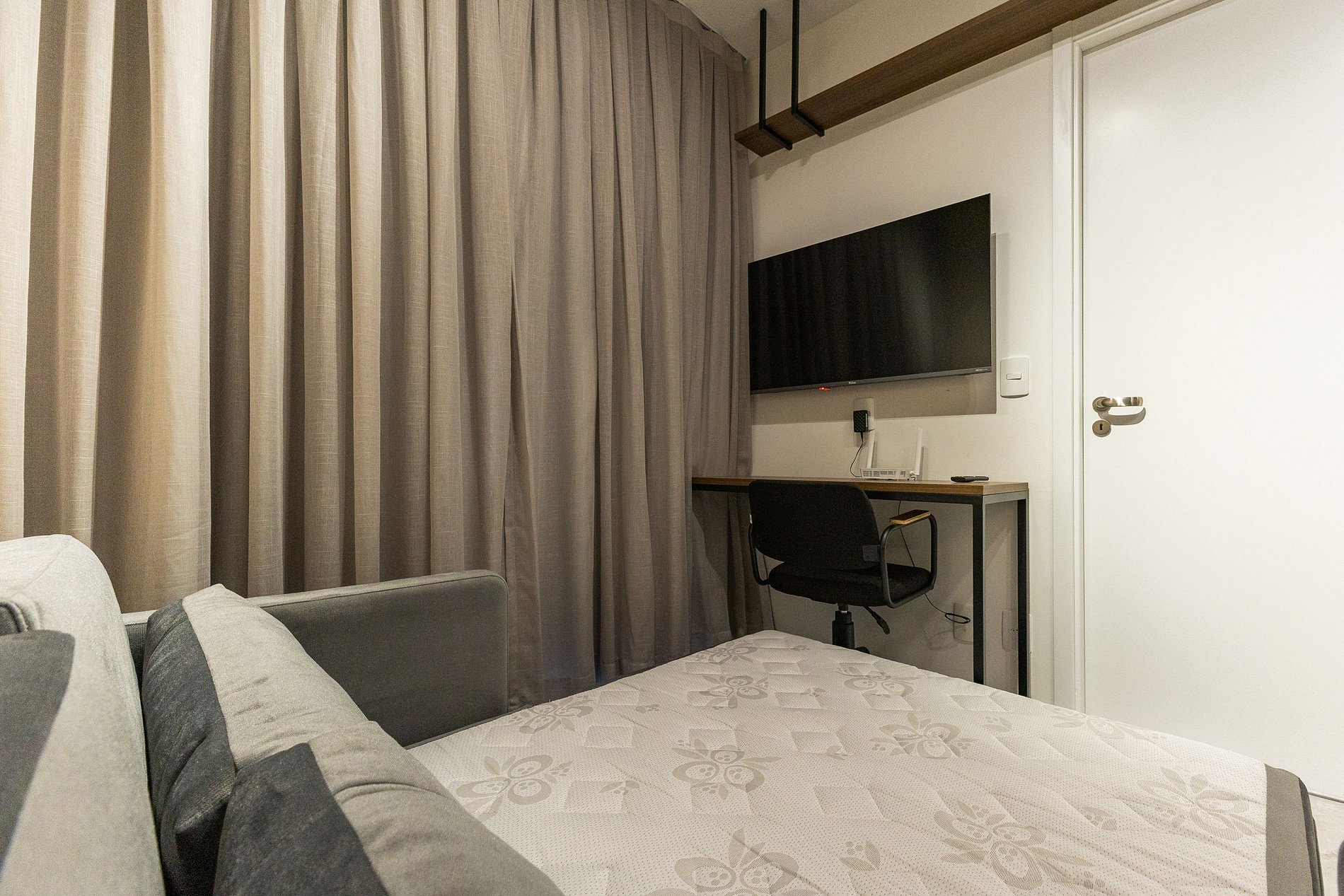 Você conta com internet Wi-Fi de 250MB e TV Smart, lembrando apenas que não disponibilizamos login para as plataformas de streaming.