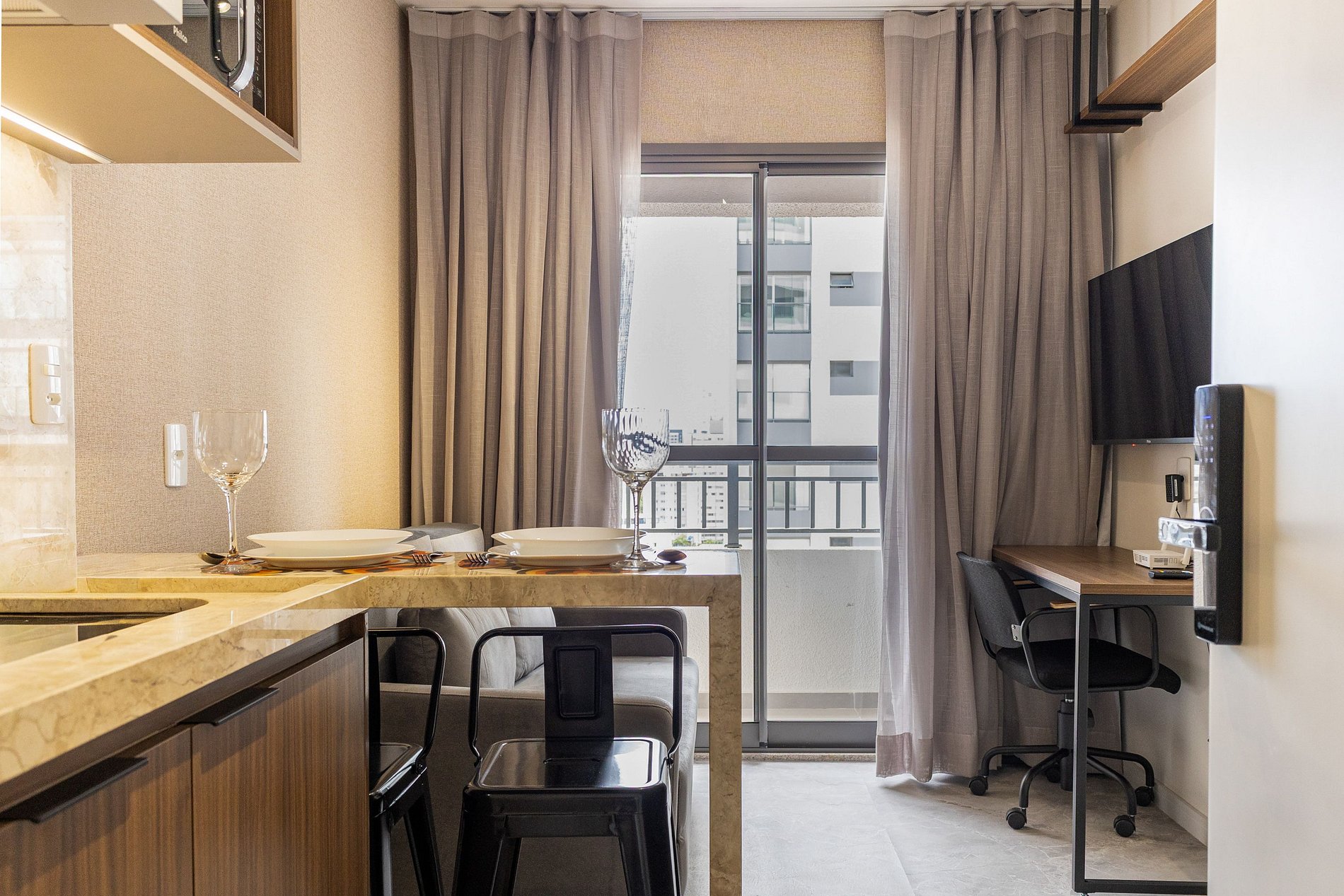 Para os hóspedes que trabalham remotamente ou que desejam explorar a cidade, o coworking e a estrutura de lazer tornam a experiência ainda mais agradável. Este é um endereço que combina sofisticação urbana com praticidade — perfeito para quem busca estadia de curto ou médio prazo com conforto de residência.