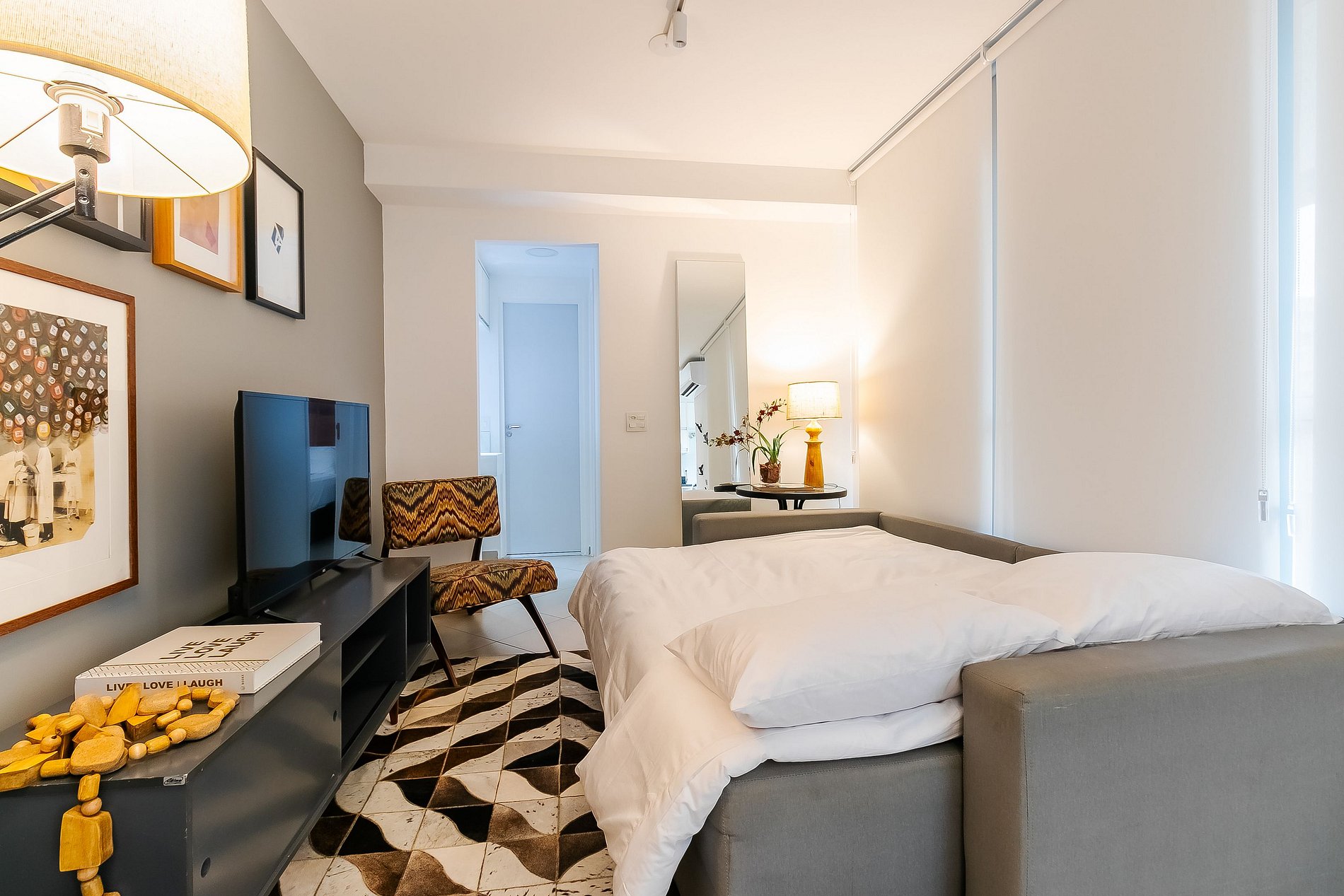 1 bedroom apartment located in the heart of one of São Paulo´s most active business and bohemian night life districts fits up to 4 people.