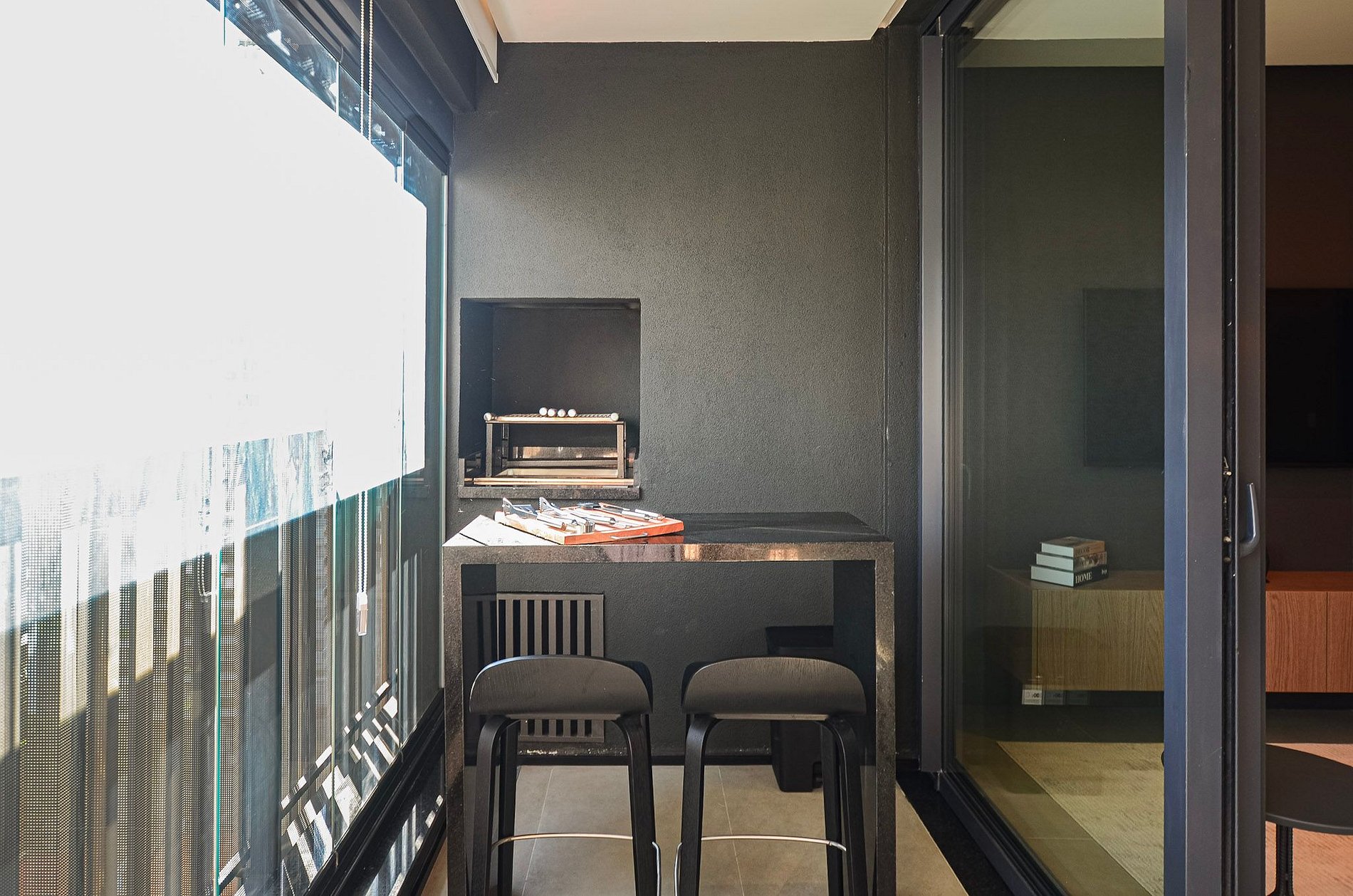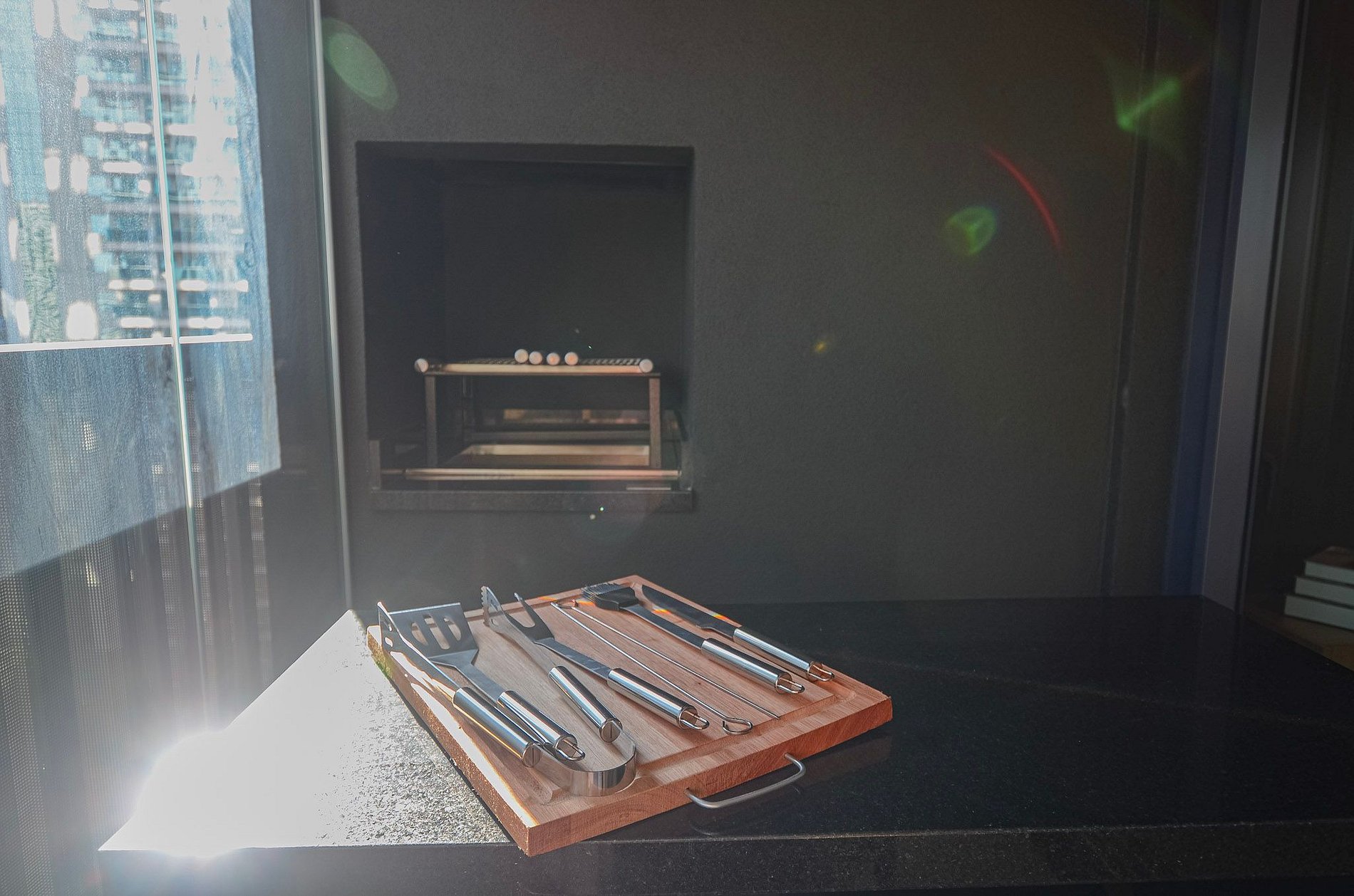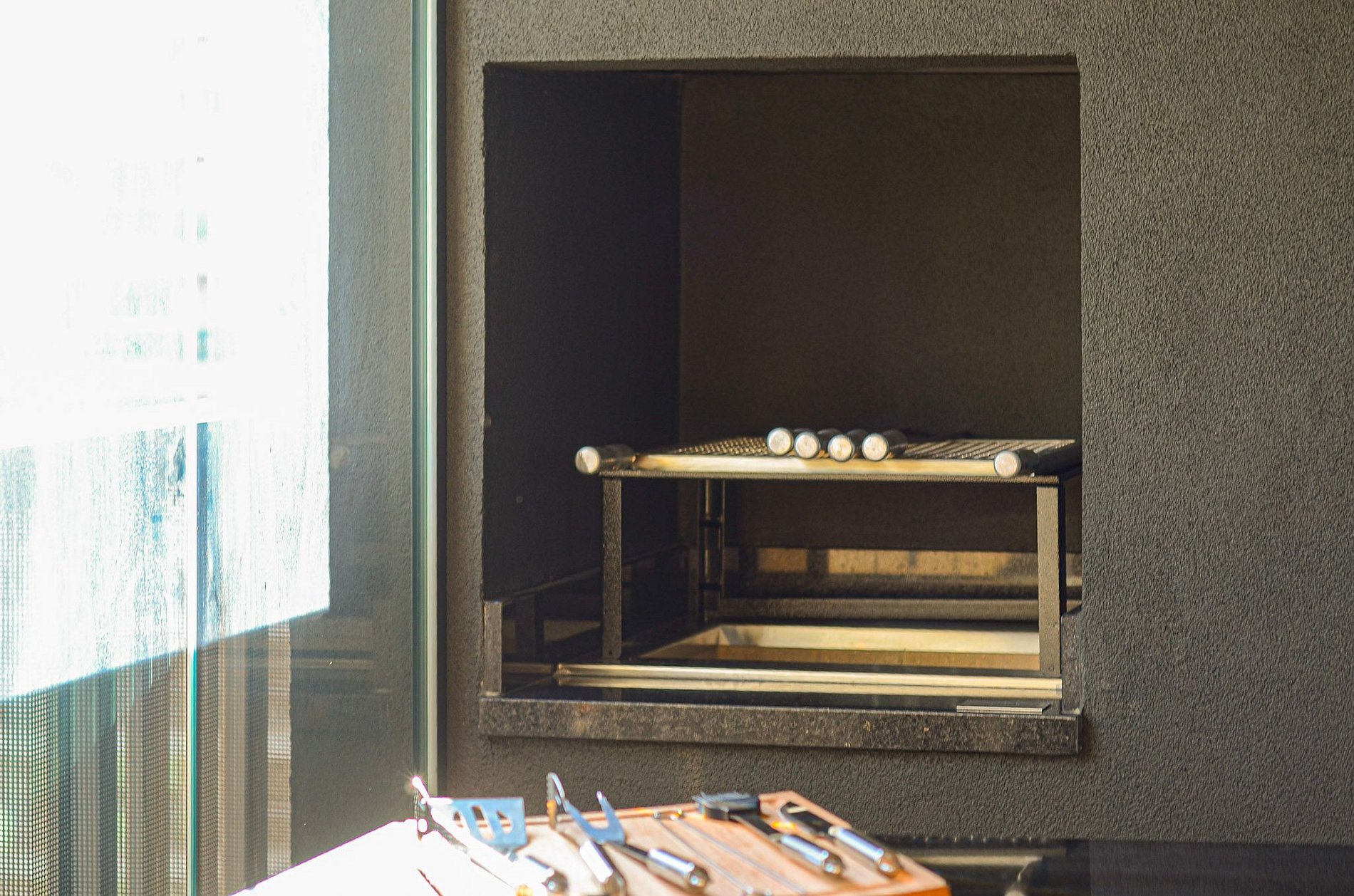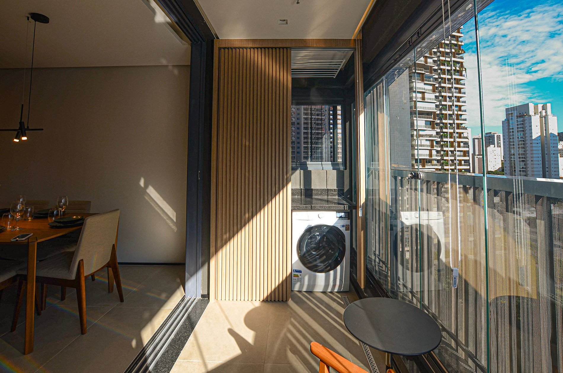 Na varanda, há churrasqueira e utensílios para o preparo de churrasco (não fornecemos carvão). É importante manter a persiana de vidro aberta sempre que a churrasqueira estiver em uso. Também há lava e seca disponível no apartamento.