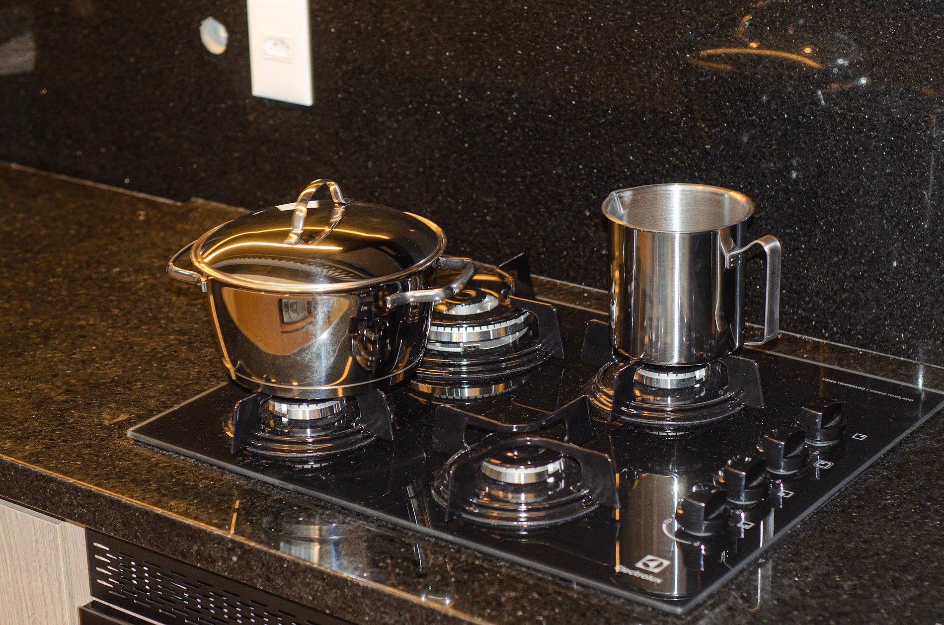A cozinha é totalmente equipada, com dois jogos de panelas para indução, refratários, formas e utensílios completos para preparo de refeições. Além disso, dispõe de forno, fogão 4 bocas, liquidificador, geladeira inverter e micro-ondas.