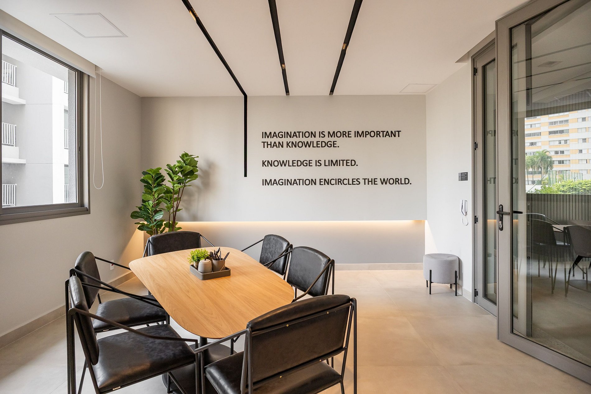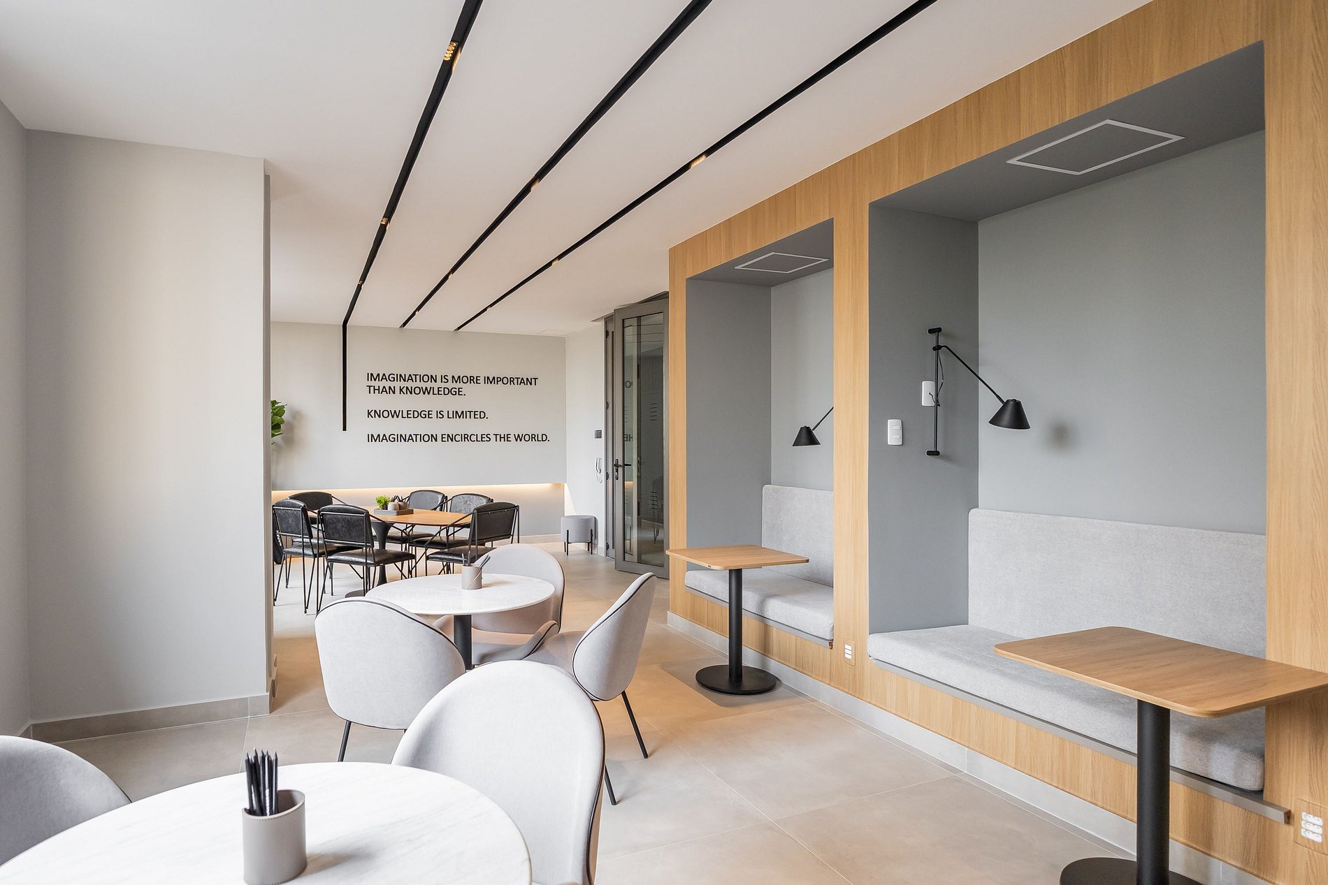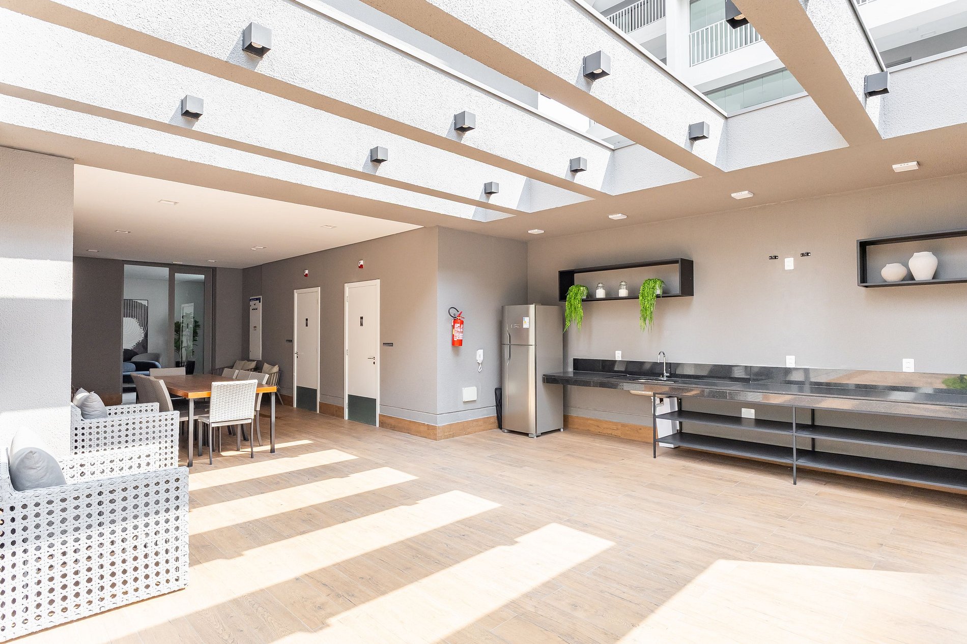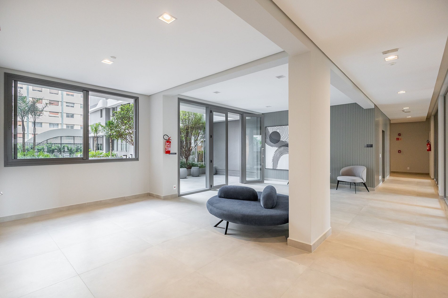 • Salas de convivência e lounge, com sofás e poltronas para descanso ou encontros informais.