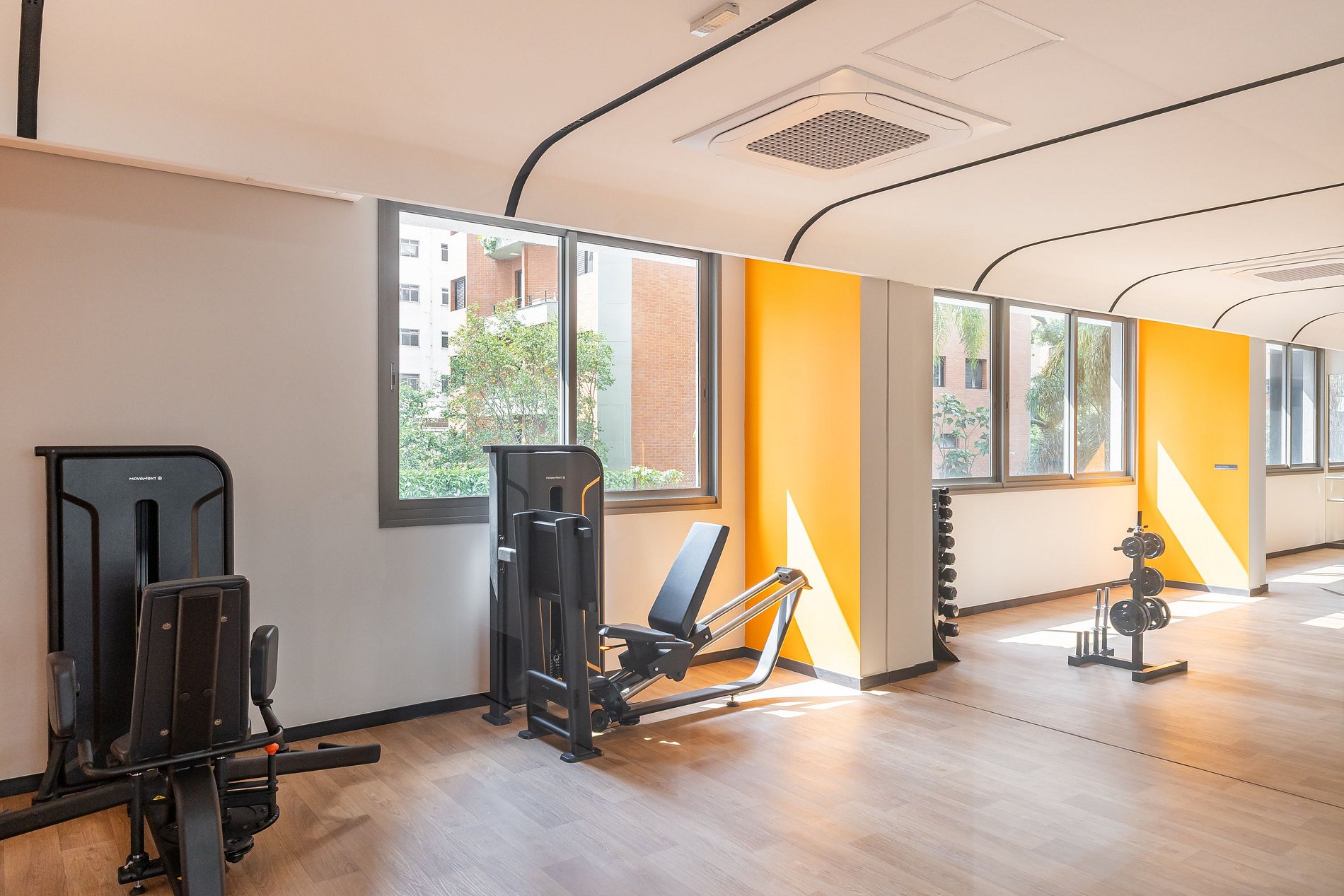 • Academia completa, equipada com esteiras, bicicletas, máquinas de musculação e pesos livres.