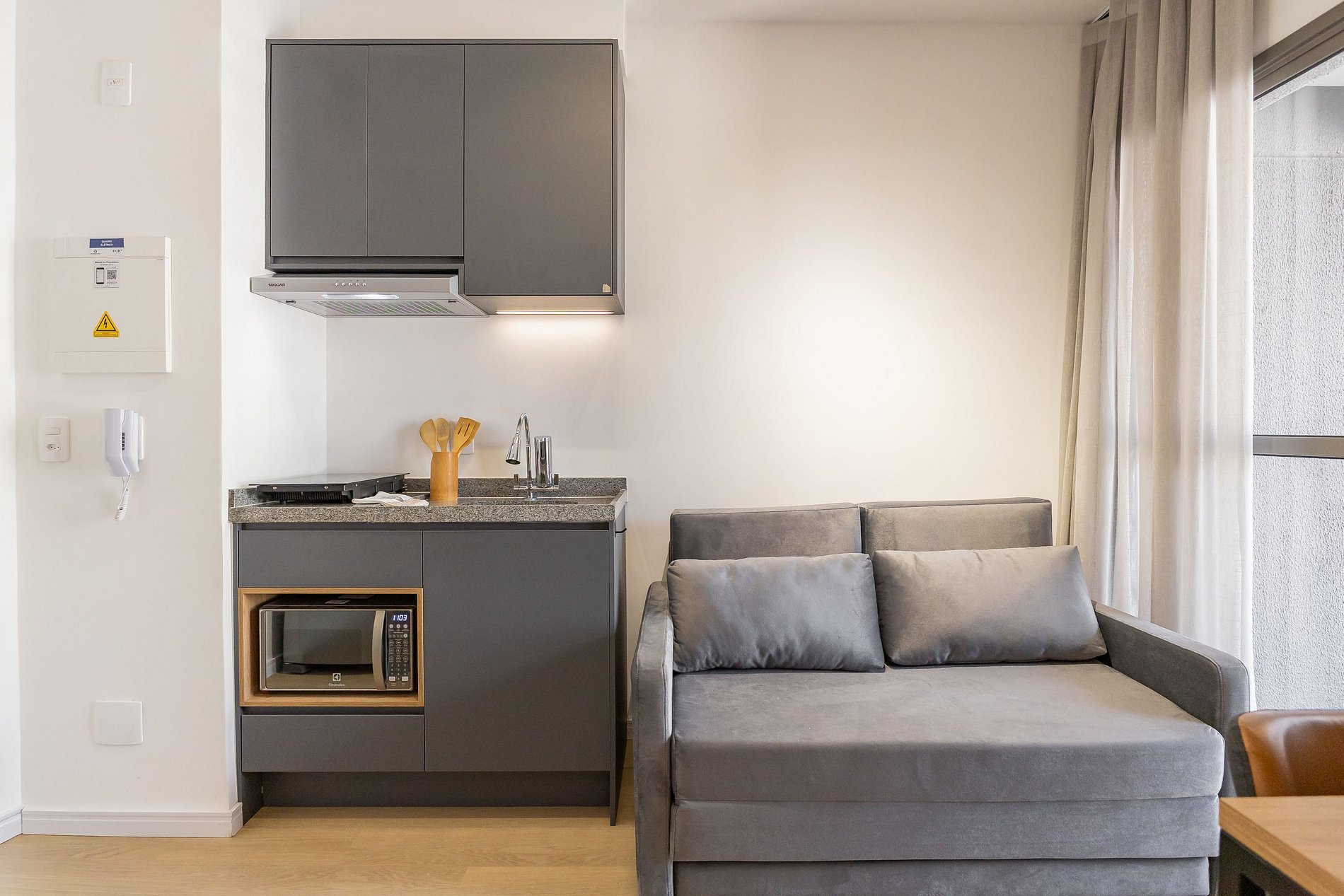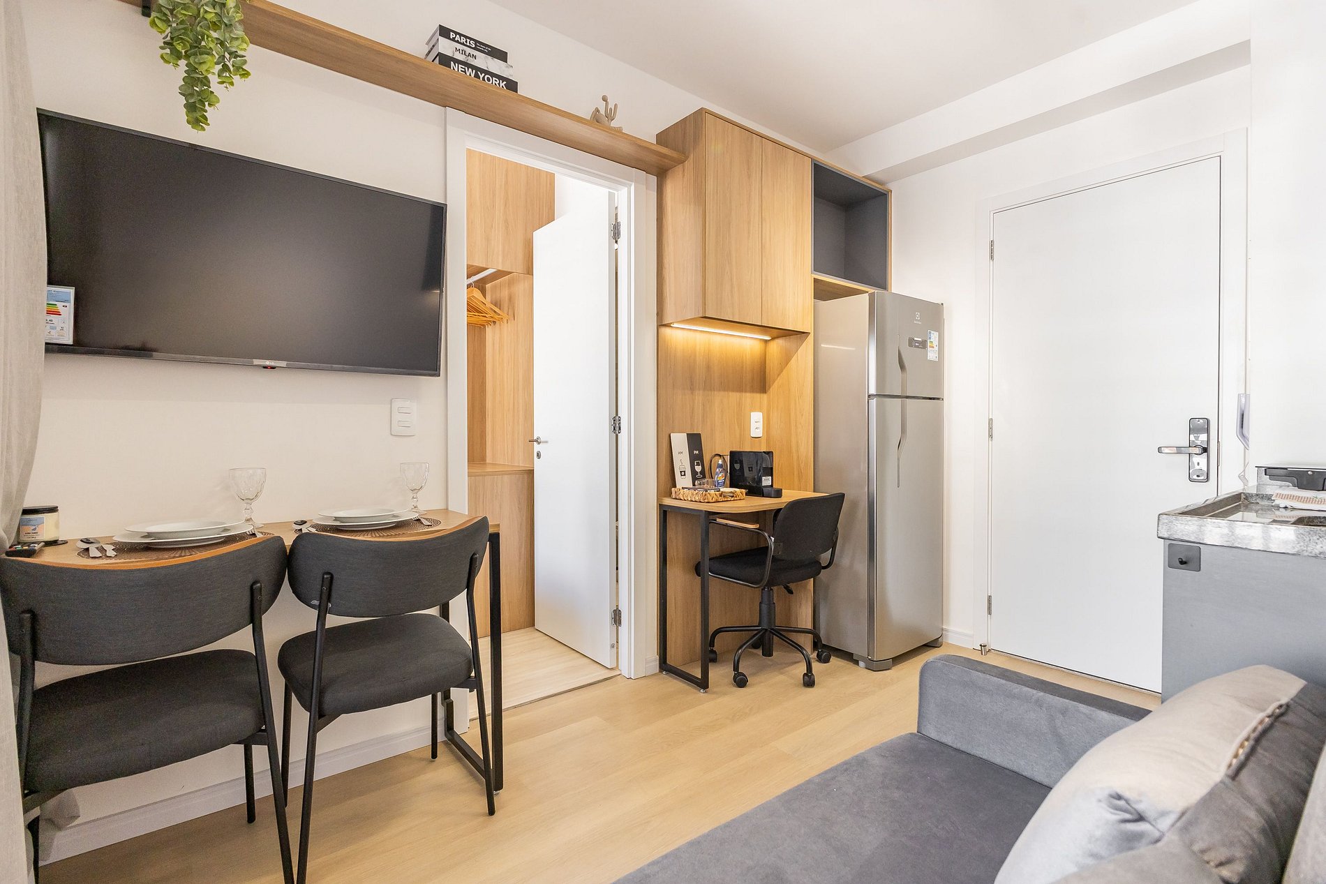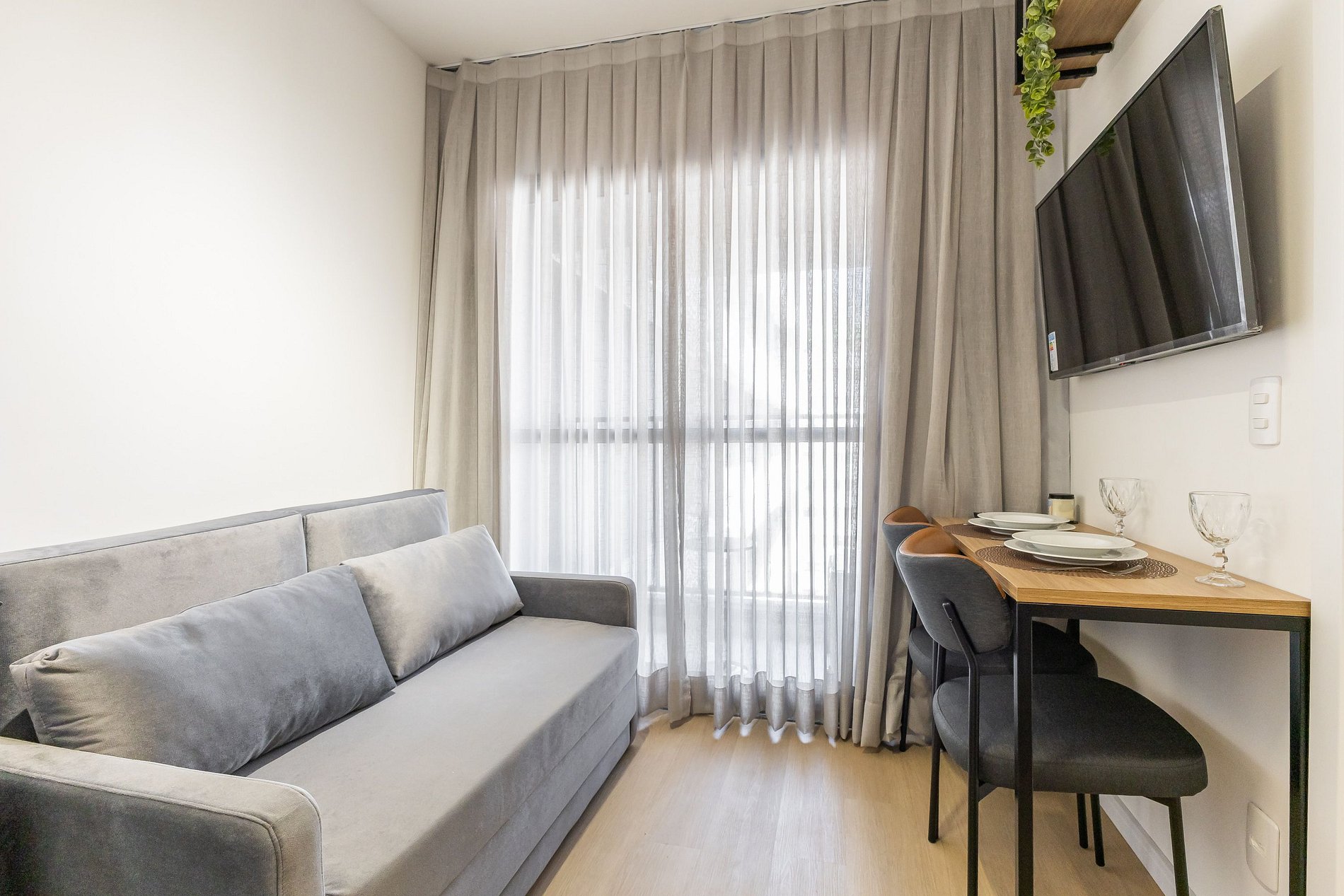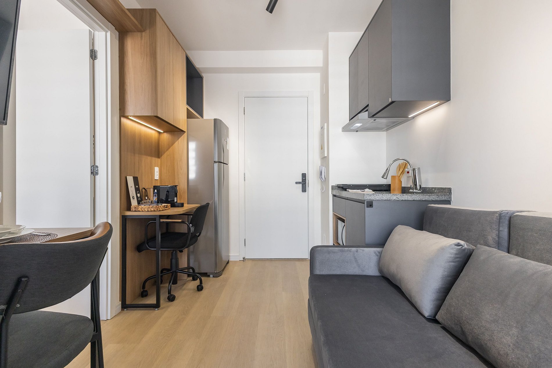 O apartamento foi planejado para trazer praticidade e uma estadia agradável.