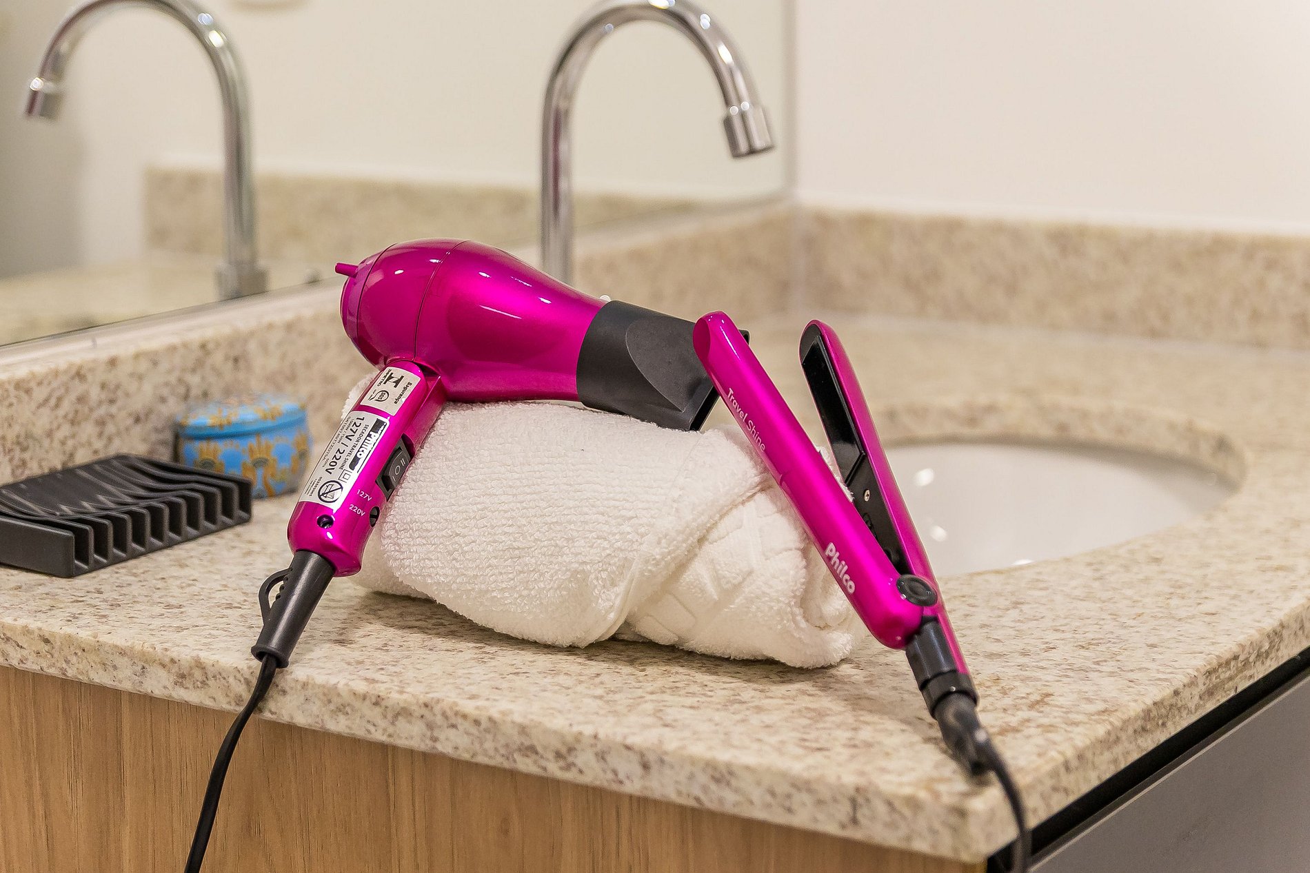 Por fim, o banheiro com secador de cabelo completa os detalhes que tornam sua estadia ainda mais prática.