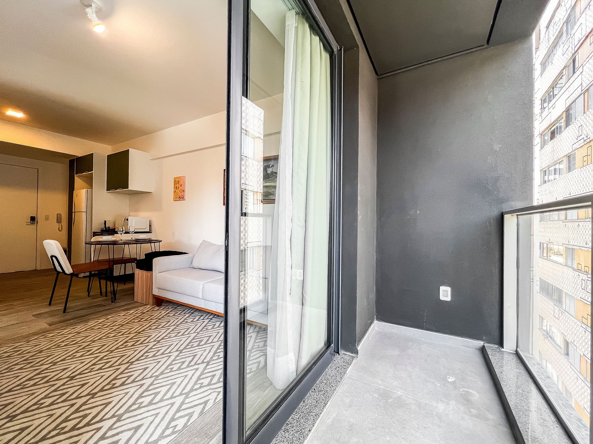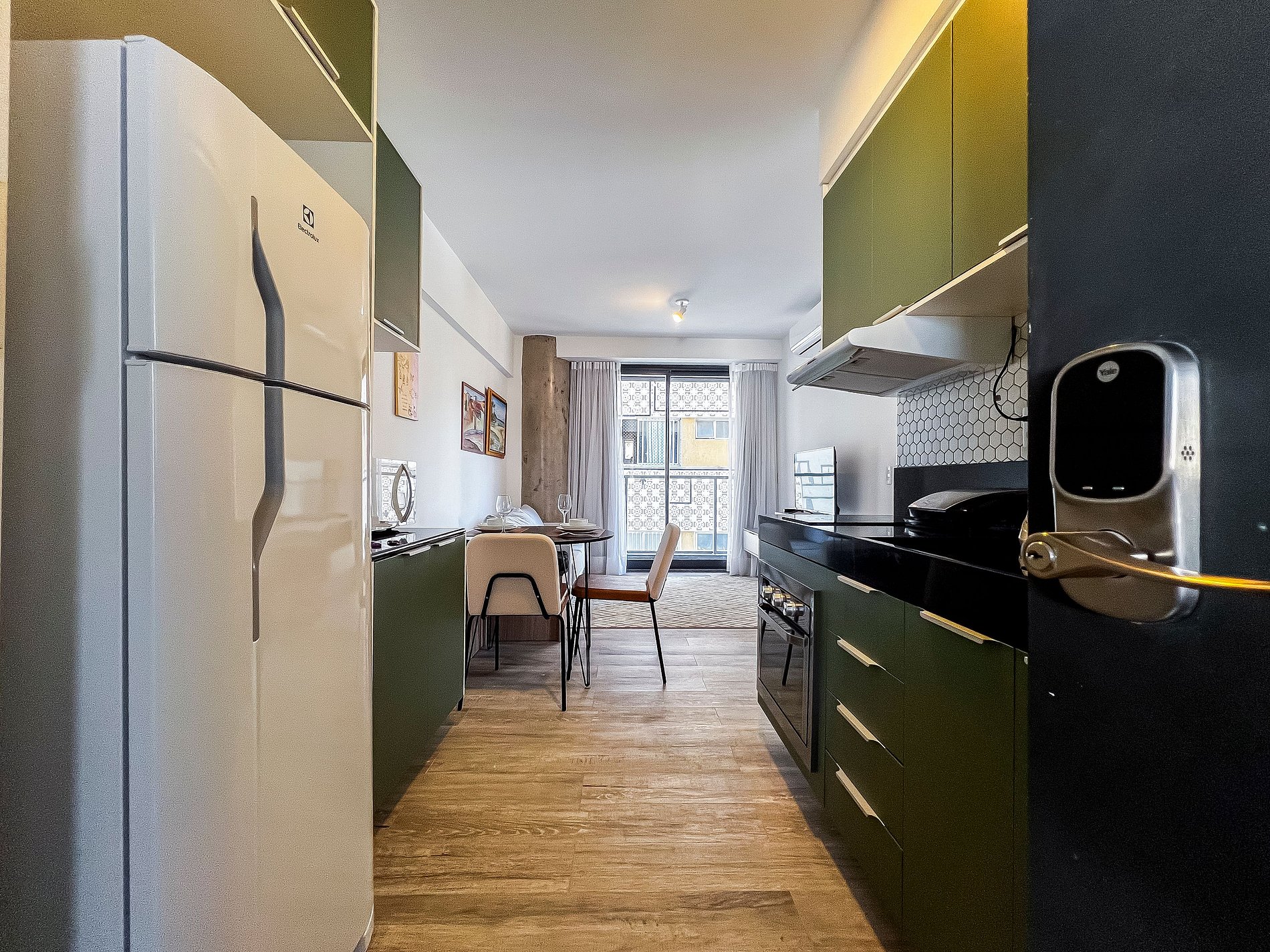 2- bedroom apartment designed for short or long stays. Accommodates up to 3 people. The apartment is excellently located, just 70 meters from Oscar Freire station, close to tourist attractions, restaurants, pharmacies, bakeries, markets, and the metro station. Come and enjoy a complete and modern apartment, featuring an electronic lock, balcony, fully equipped kitchen, air conditioning, high-speed Wi-Fi, and Smart TV.