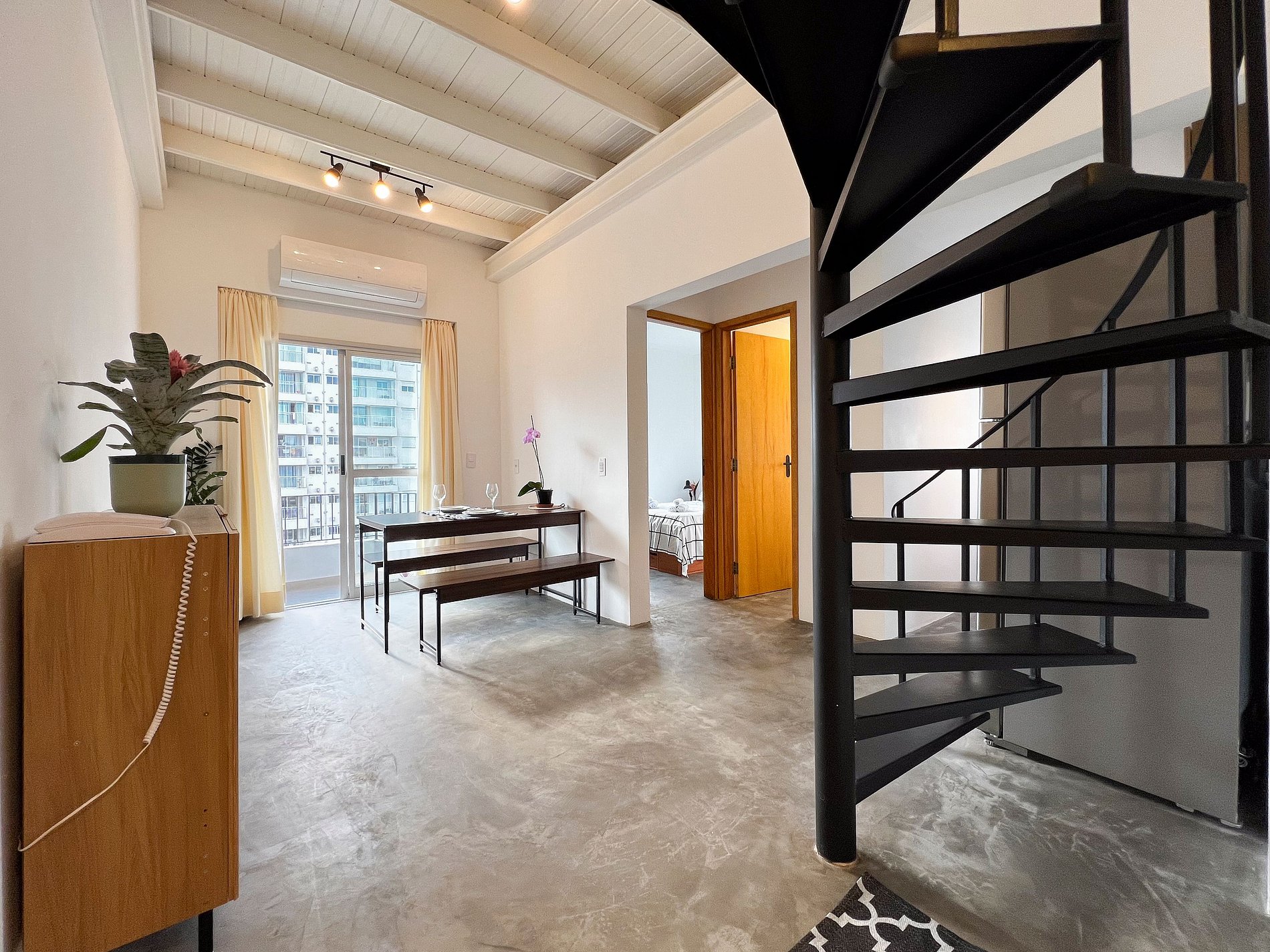 Este duplex equipado combina design, conforto e localização privilegiada na Bela Vista, a 800 metros da Avenida Paulista e próximo aos hospitais Beneficência Portuguesa, Oswaldo Cruz, Sancta Maggiore e HCor, ideal para quem busca praticidade.