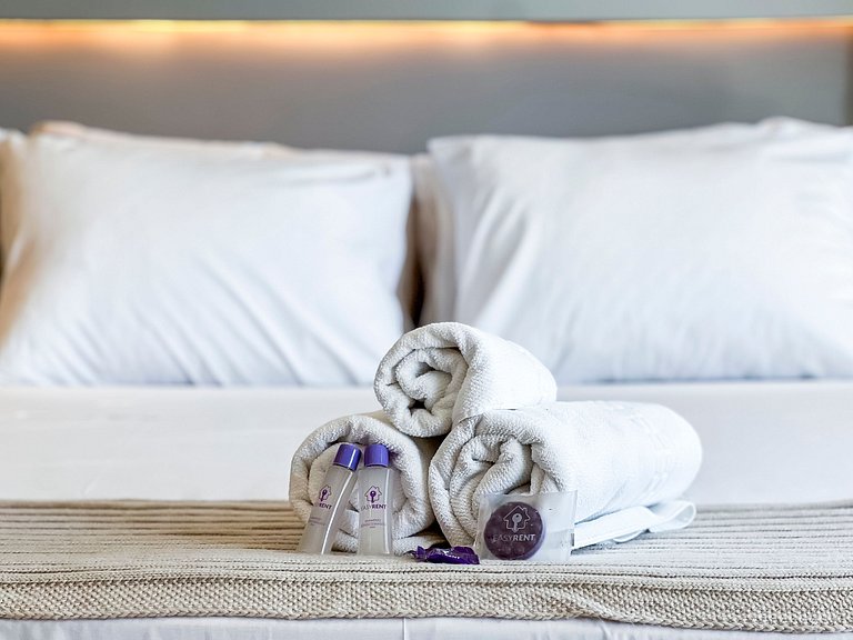 Para sua comodidade, o espaço está totalmente equipado com Wi-Fi de 250 Mbps, Smart TV na sala, ar-condicionado em todos os cômodos, roupas de cama e banho e cozinha completa.