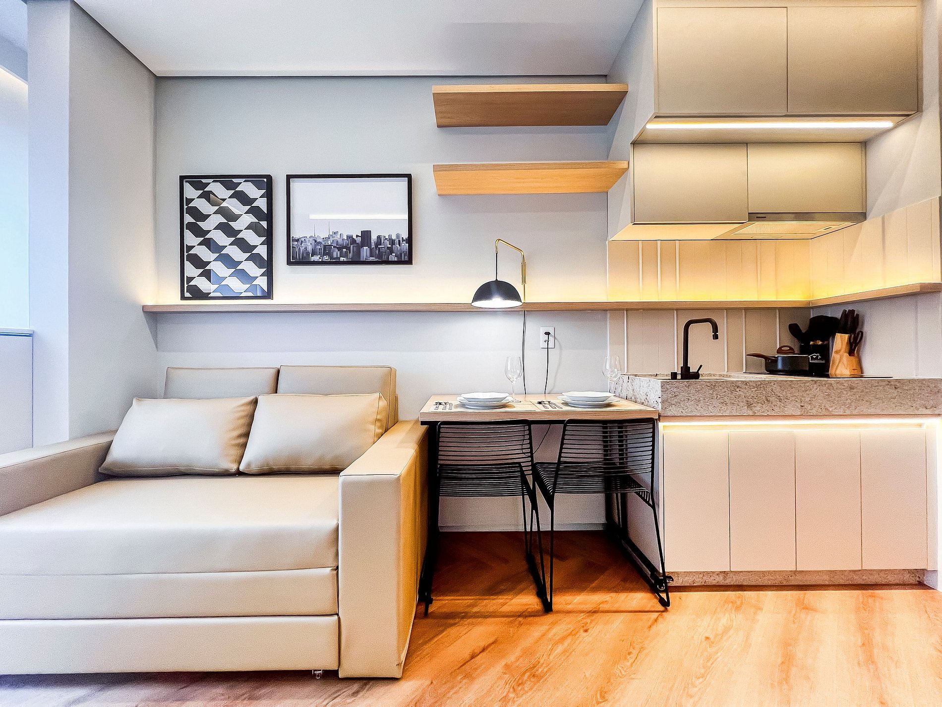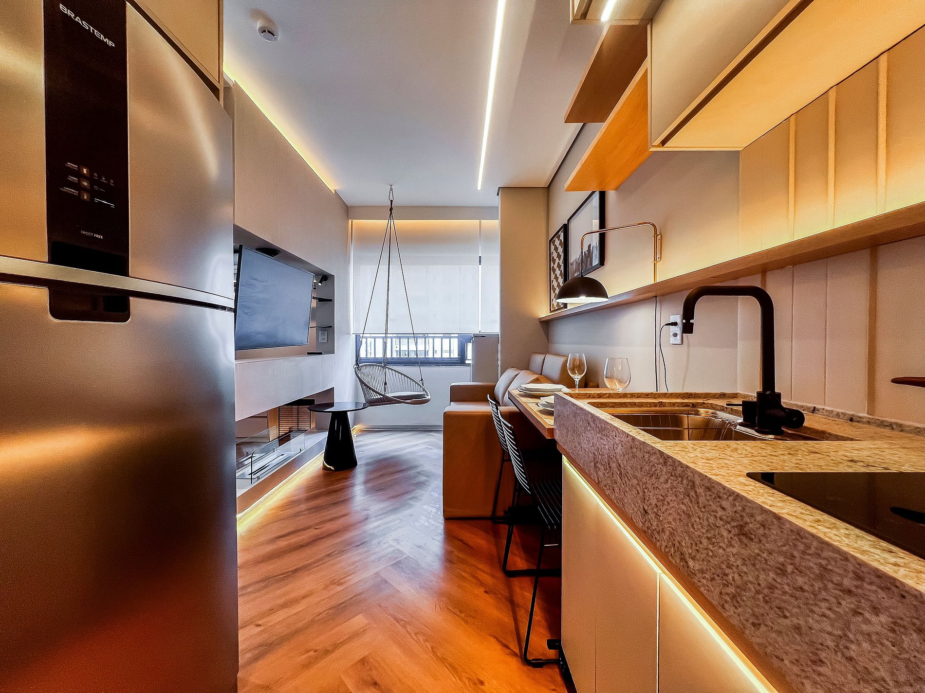Design, localização e conforto são os pontos fortes desse apartamento.