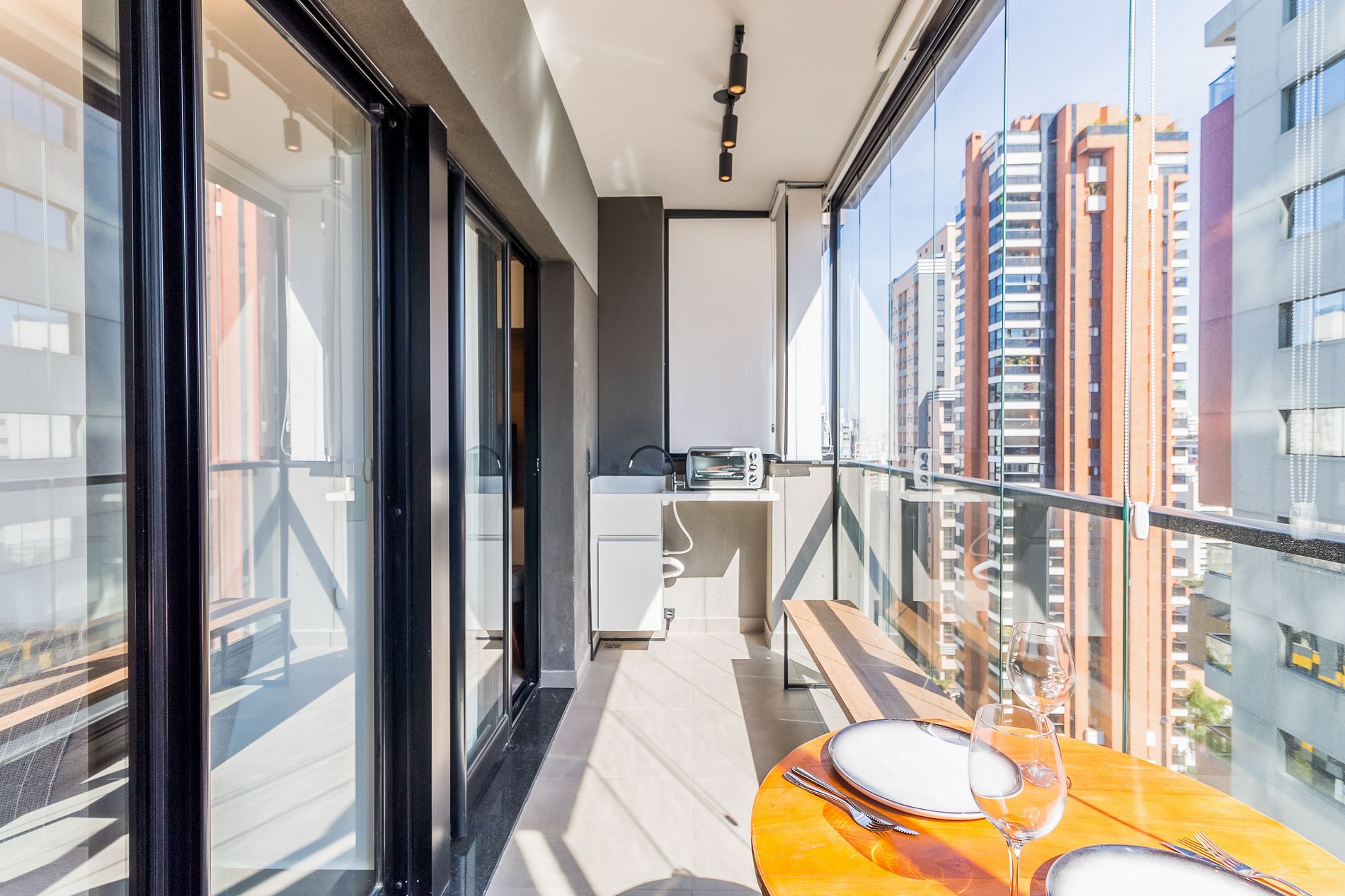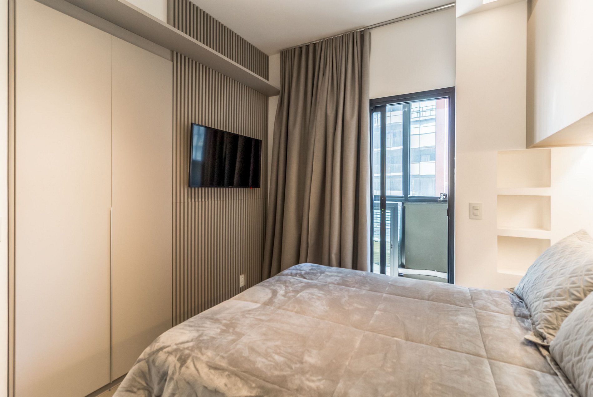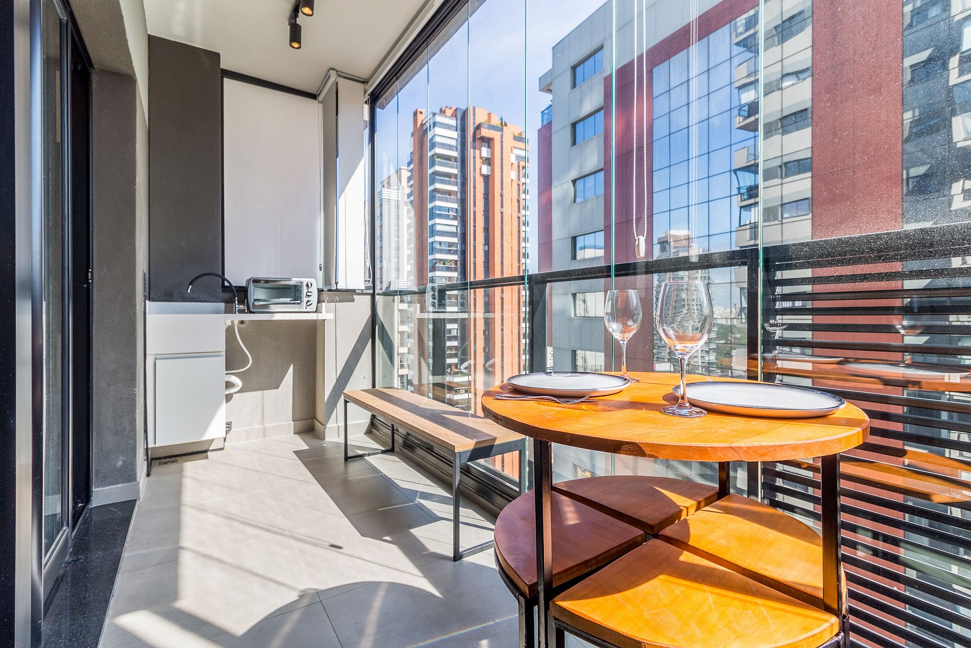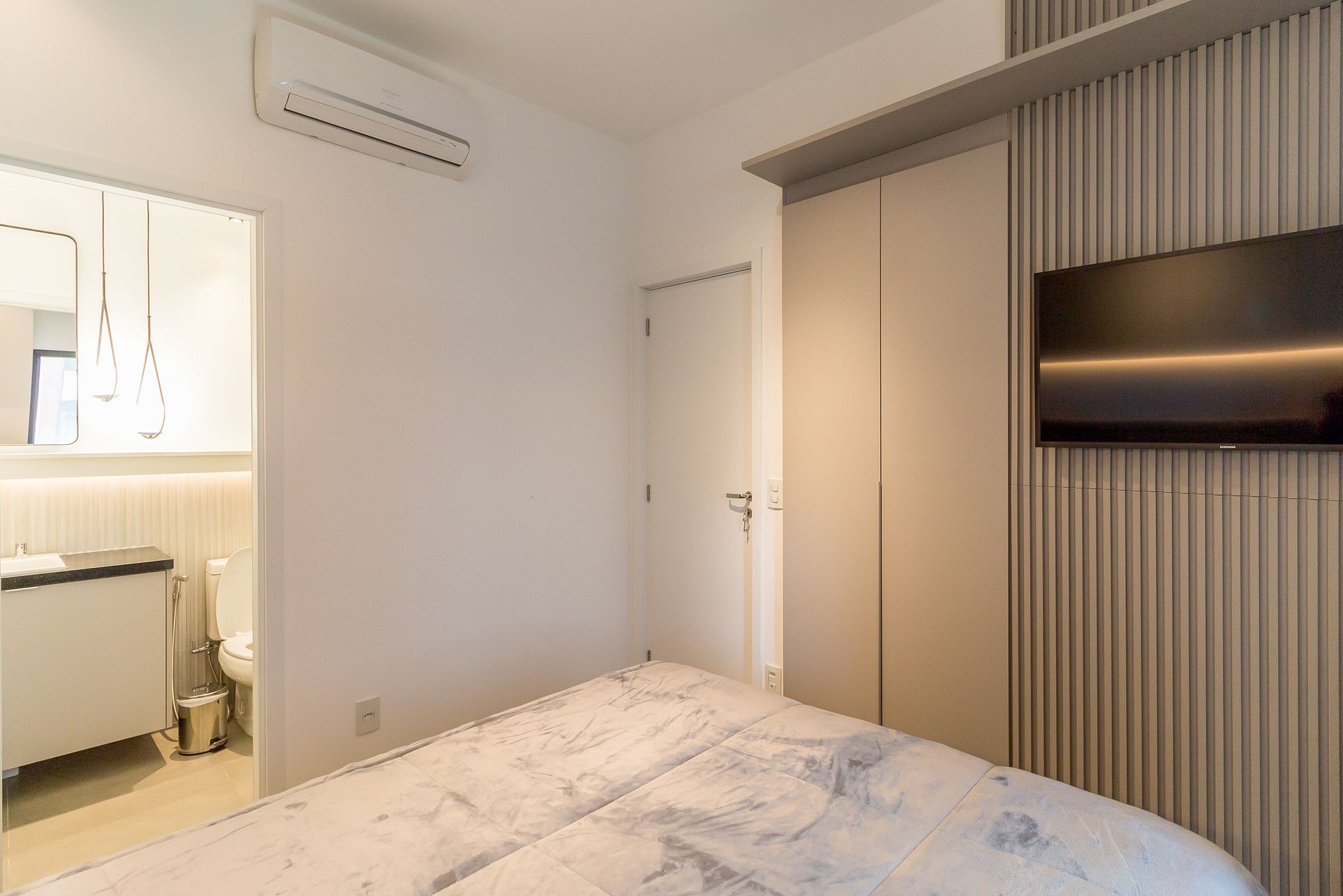 Come enjoy a complete and modern apartment, with electronic lock, balcony, equipped kitchen, air conditioning, high-speed Wi-Fi, Smart TV.
