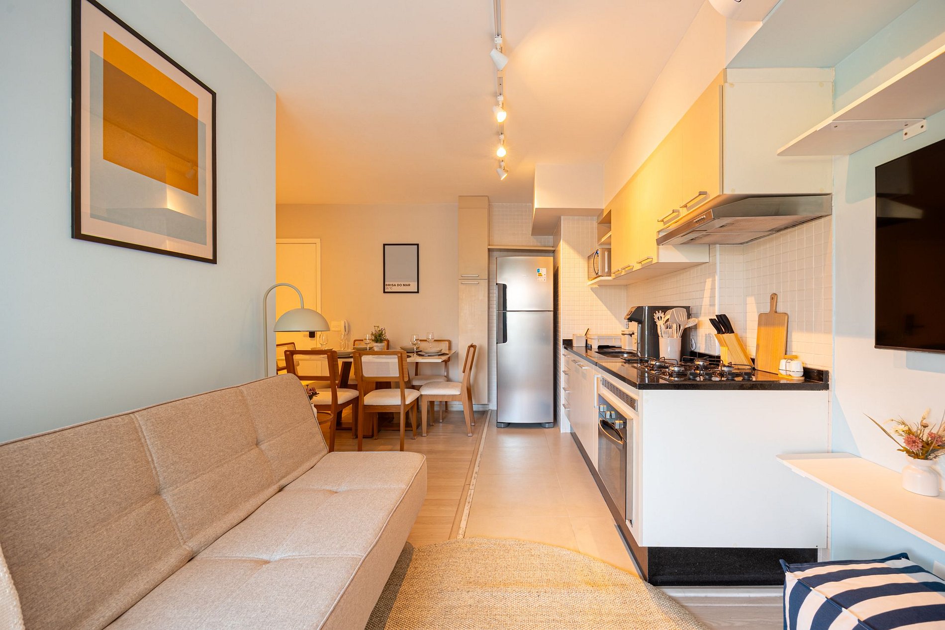 O apartamento foi planejado para oferecer praticidade e uma estadia agradável em cada detalhe.