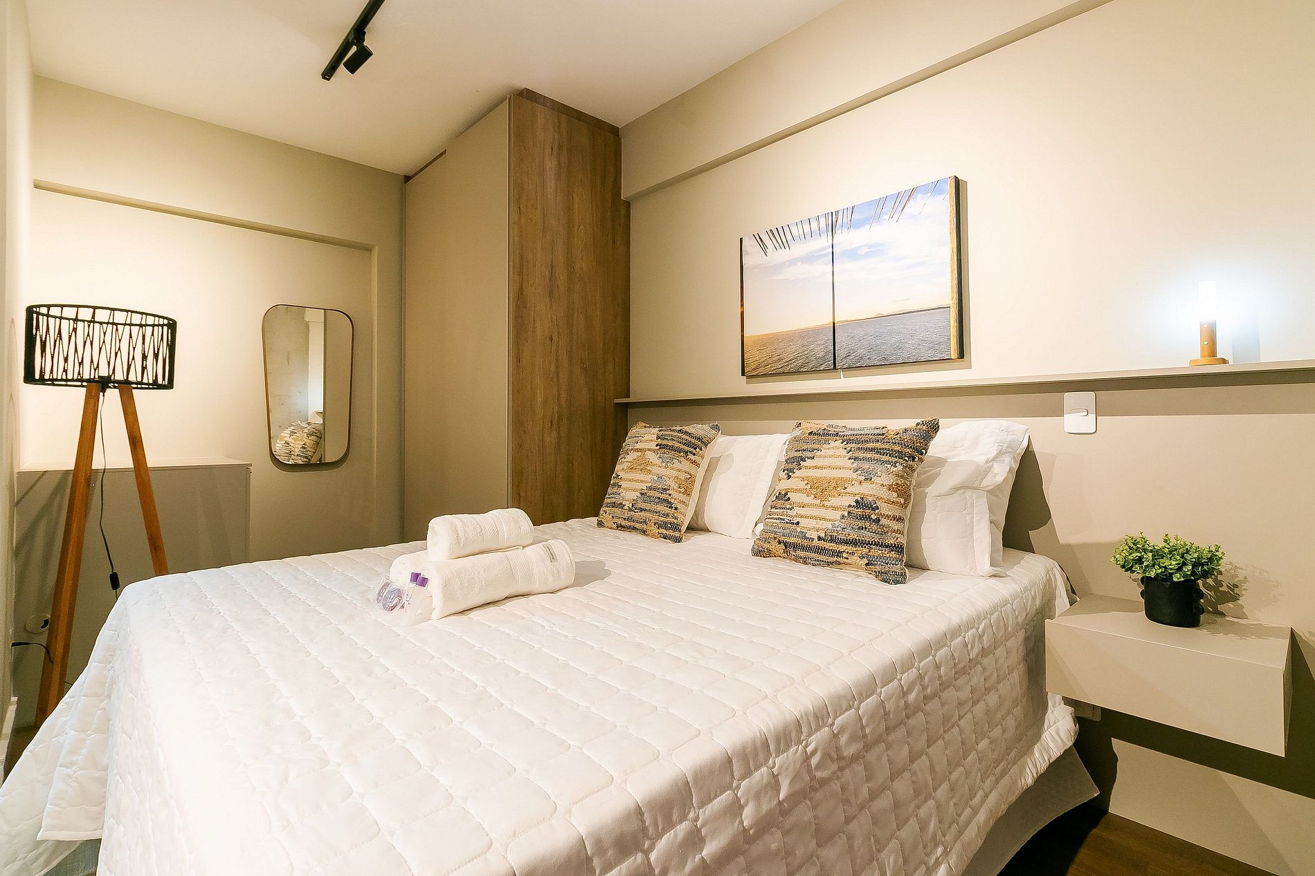 Venha aproveitar um apartamento completo e moderno, com fechadura eletrônica, sacada, cozinha equipada, ar condicionado, Wi-Fi de alta velocidade, Smart TV. (não disponibilizamos login de acesso nas plataformas de streaming)