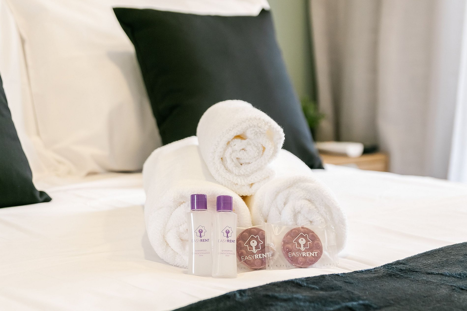 Le ofrecemos todo lo que necesita. Desde juegos de cama y baño hasta utensilios de uso cotidiano. - Internet Wi-Fi 250 Mbps - Smart TV de 40 - Cocina totalmente equipada - Ropa de cama - Toallas - Aire acondicionado - Conserje 24 horas - El condominio también cuenta con piscina, gimnasio, lavandería y espacio de co-working.