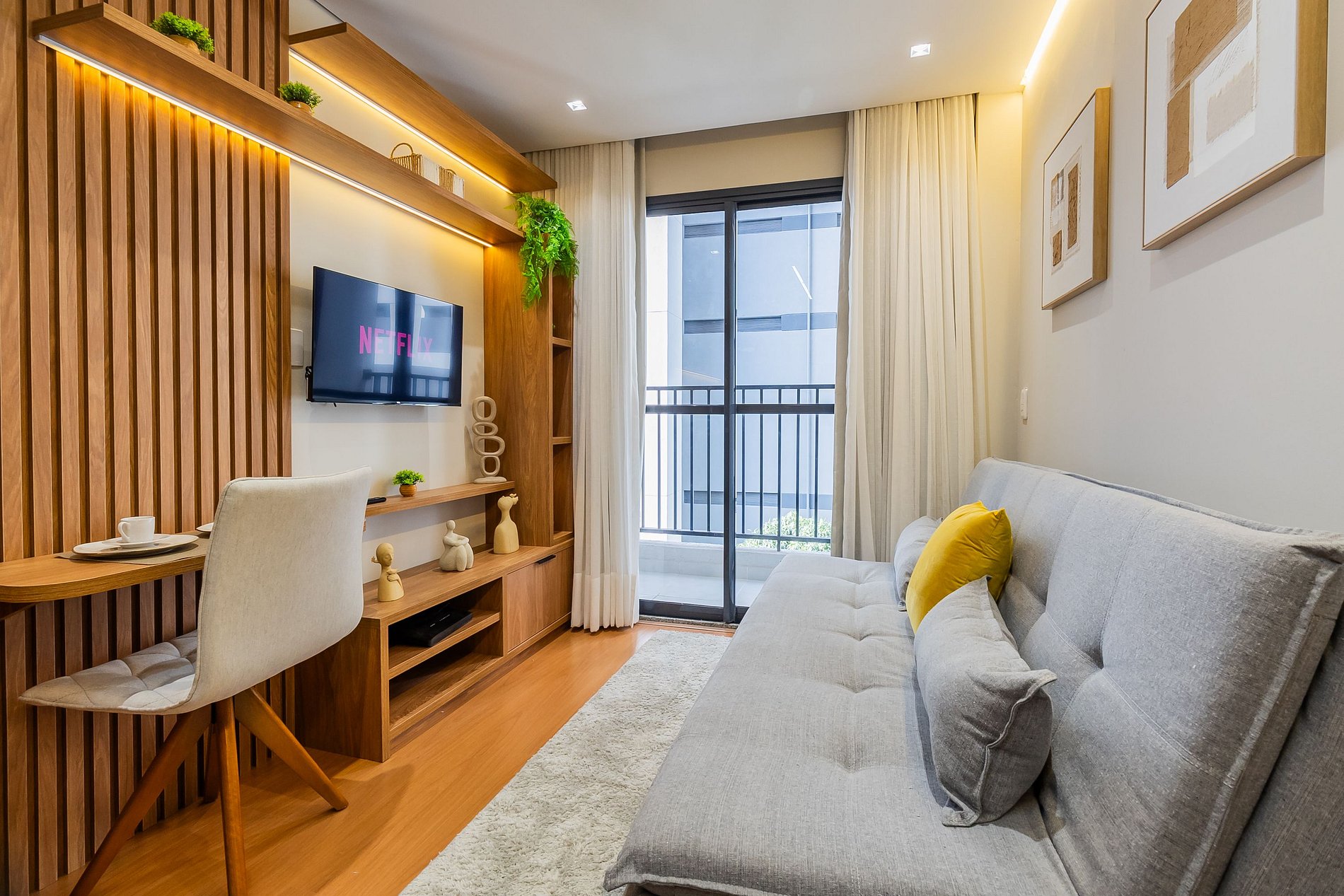 Design, localização e conforto são os pontos fortes desse apartamento.