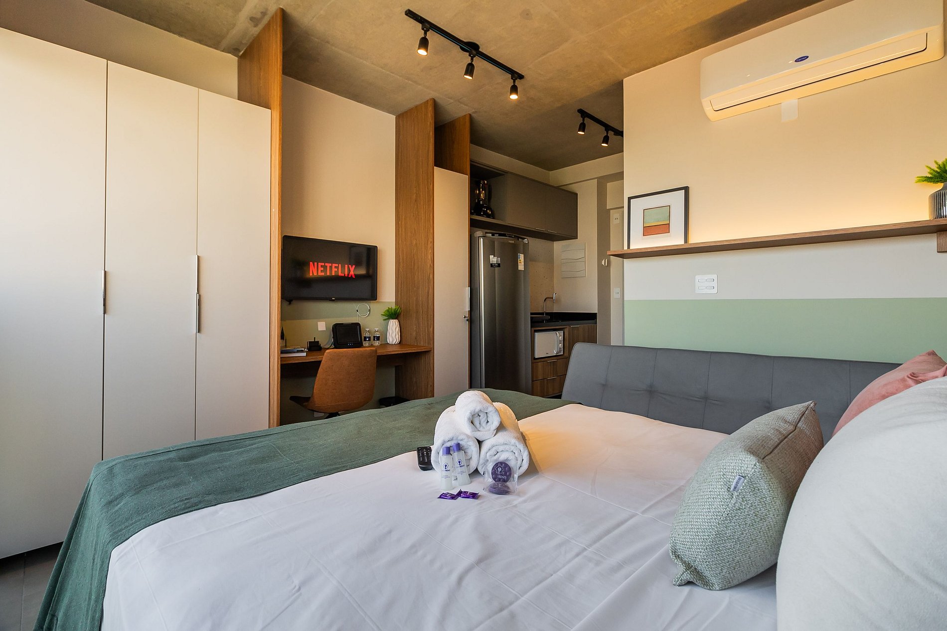 Apartamento completo e com varanda ampliada no coração do Jardim Paulista. Espaçoso e moderno, acomoda até 3 hóspedes com cama queen e sofá-cama. A poucos minutos da Av. Paulista, o prédio ON Lorena oferece piscina, coworking, academia, lavanderia e mercado. Fácil acesso a farmácias e restaurantes. Perfeito para lazer ou trabalho, com internet e TV Vivo a cabo, ar-condicionado e água filtrada direto da torneira.