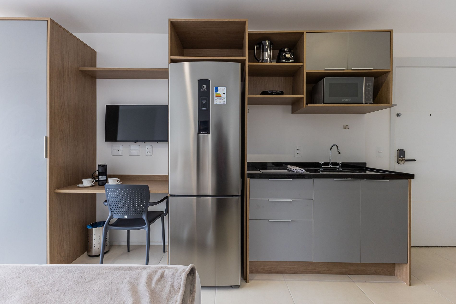 O apartamento foi planejado para trazer praticidade e uma estadia agradável.