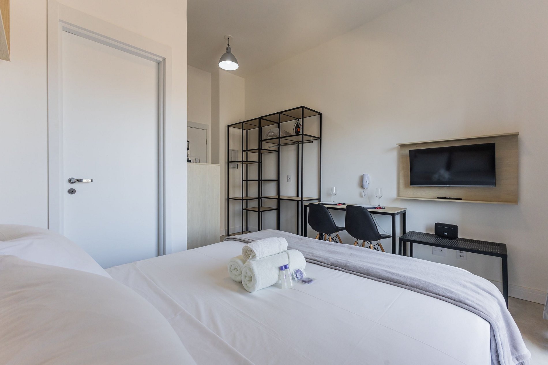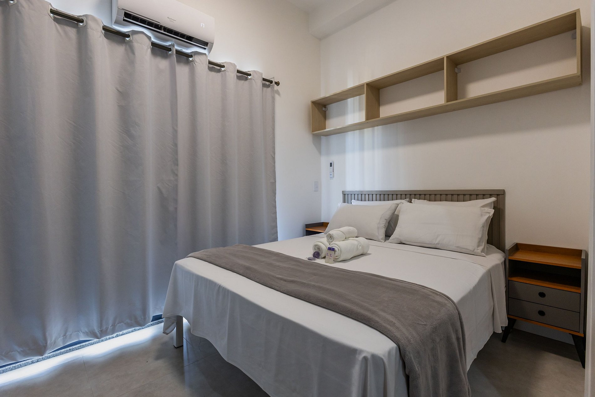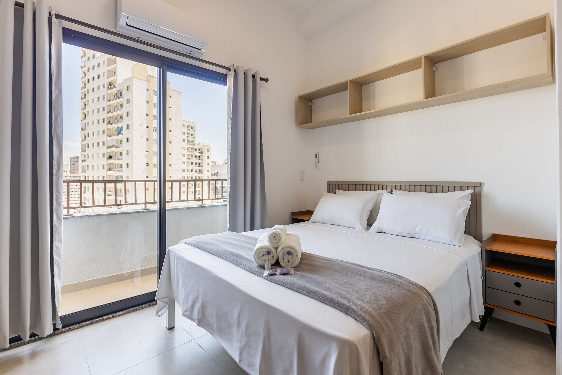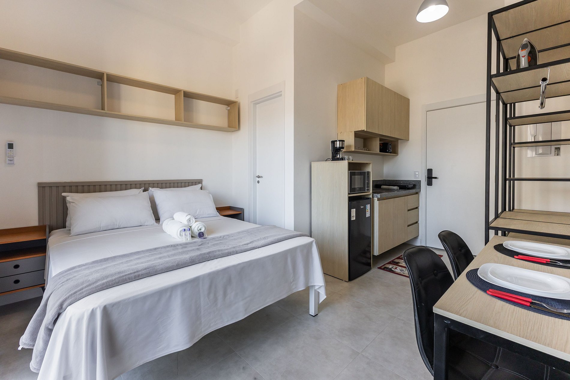 Conta com enxoval de cama e banho (sem reposição ou trocas), cozinha compacta com utensilios para o preparo de pequenas refeições, banheiro com secador de cabelo e uma charmosa varanda.
