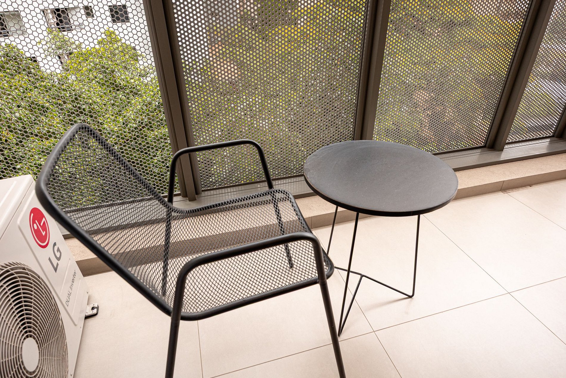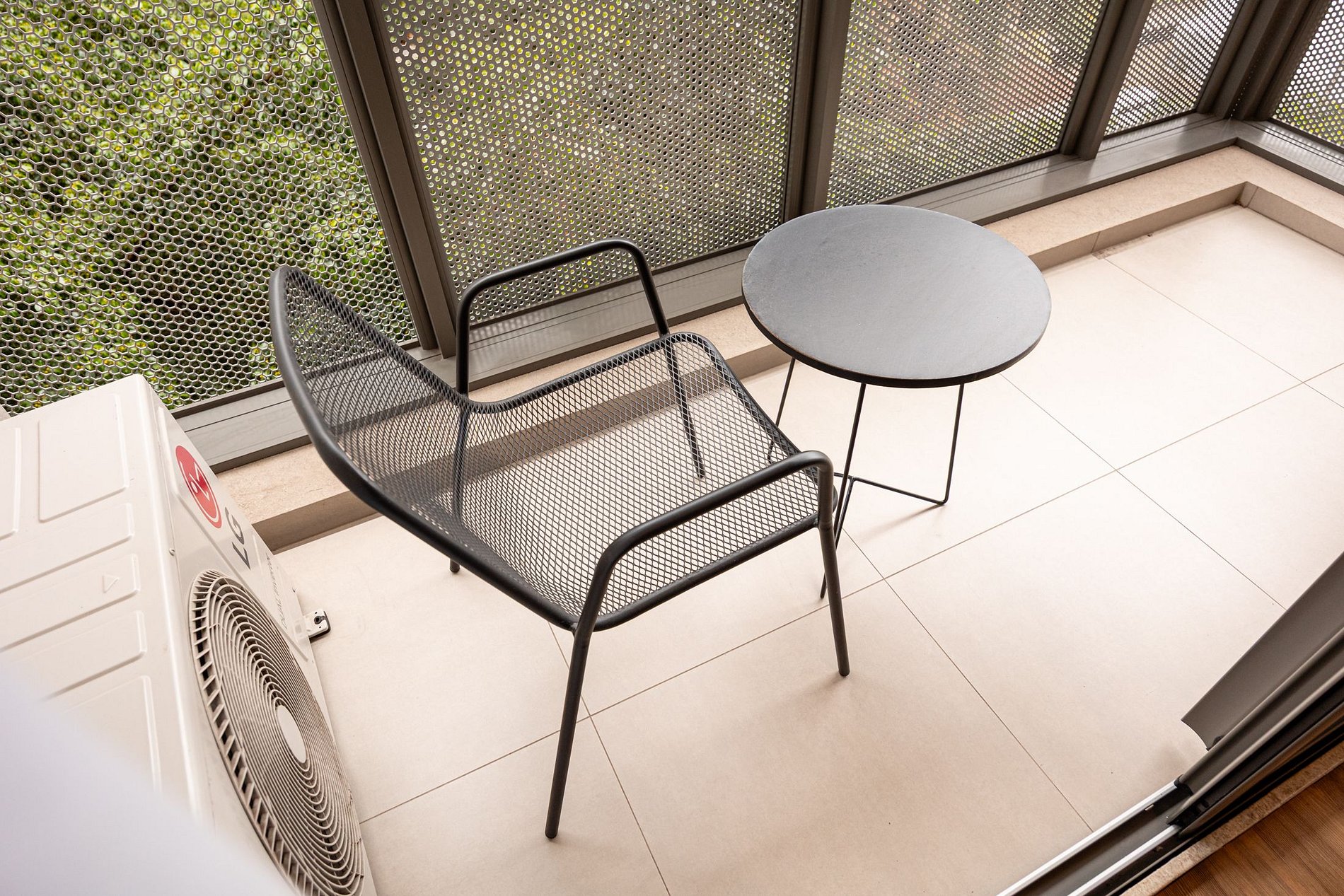 O apartamento também dispõe de ar-condicionado (somente refrigeração) e uma adorável varanda.