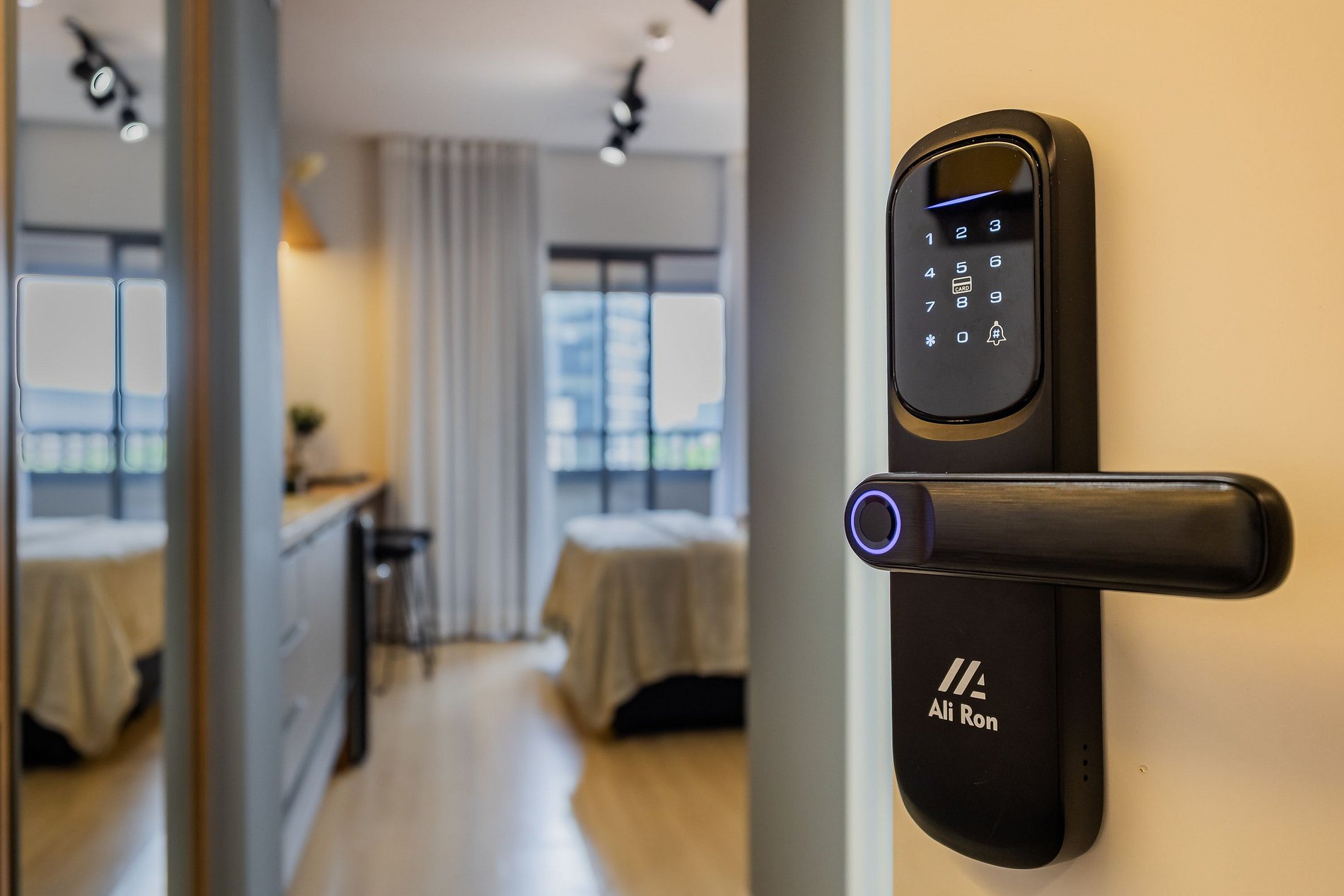 Ambiente moderno e seguro, ideal para quem busca praticidade e conforto durante a estadia.