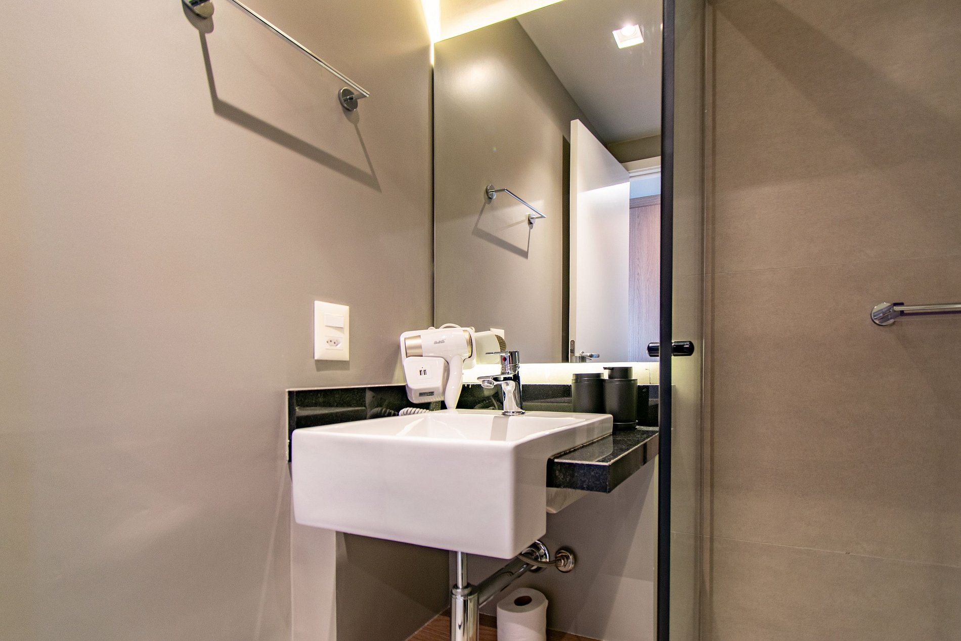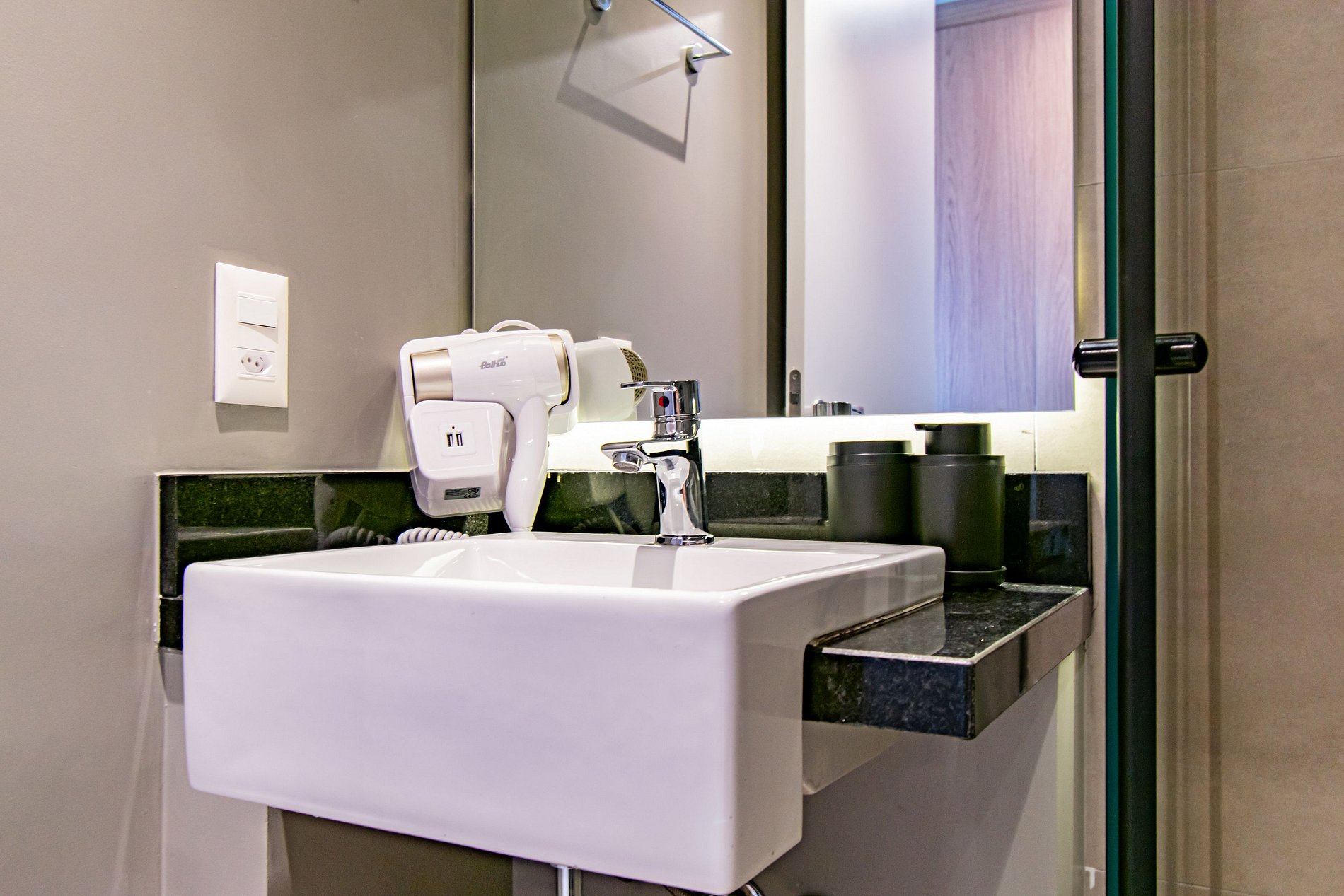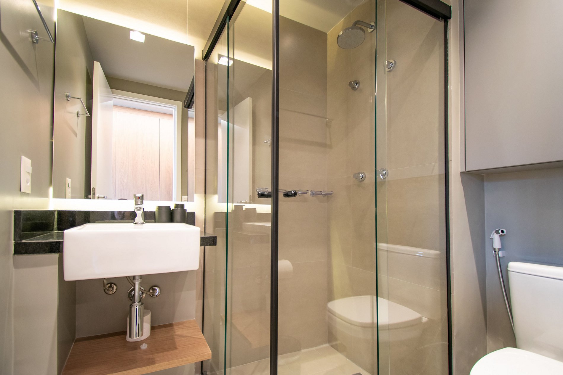 Por fim, o banheiro com secador de cabelo traz ainda mais praticidade para a sua rotina.