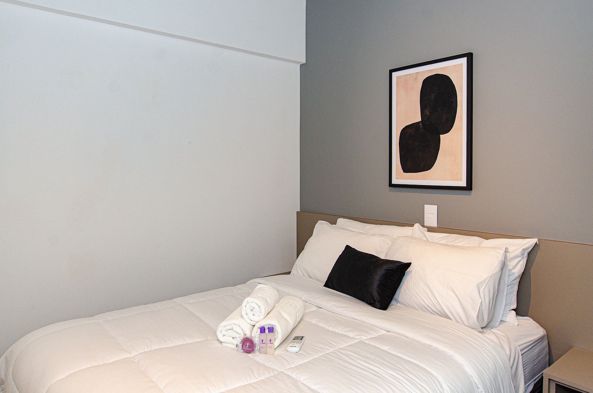 Conta com enxoval de cama e banho (sem reposição ou trocas), cozinha compacta com utensílios para o preparo de pequenas refeições e banheiro privativo.
