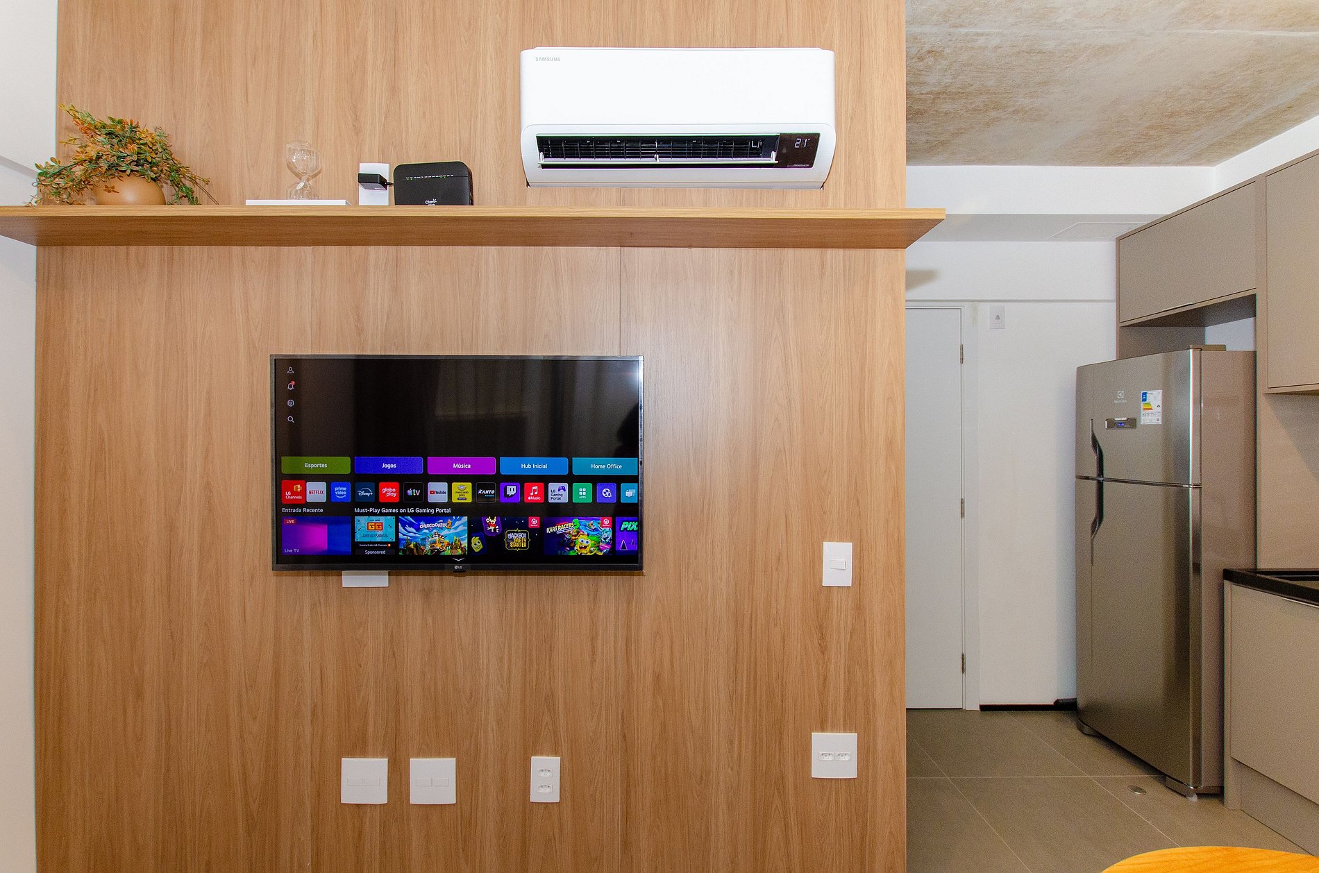 Você conta com internet Wi-Fi de 250MB e TV Smart, lembrando apenas que não disponibilizamos login para as plataformas de streaming.