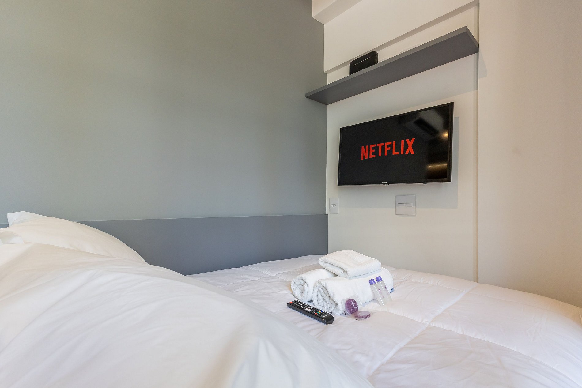 Você conta com internet Wi-Fi de 250MB e TV Smart, lembrando apenas que não disponibilizamos login para as plataformas de streaming.