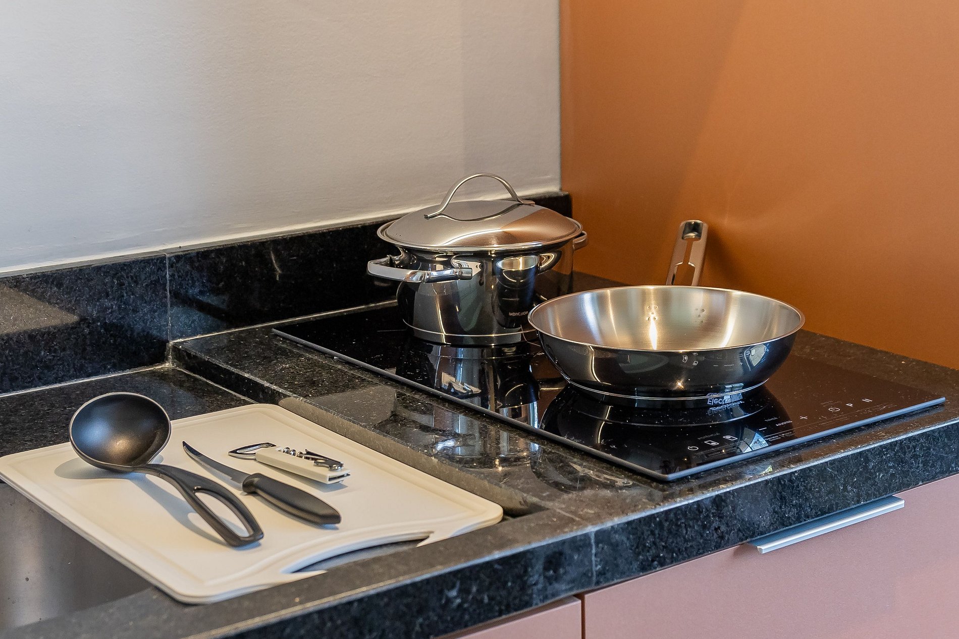 A cozinha equipada com itens básicos permite o preparo de pequenas refeições, garantindo mais autonomia no dia a dia.