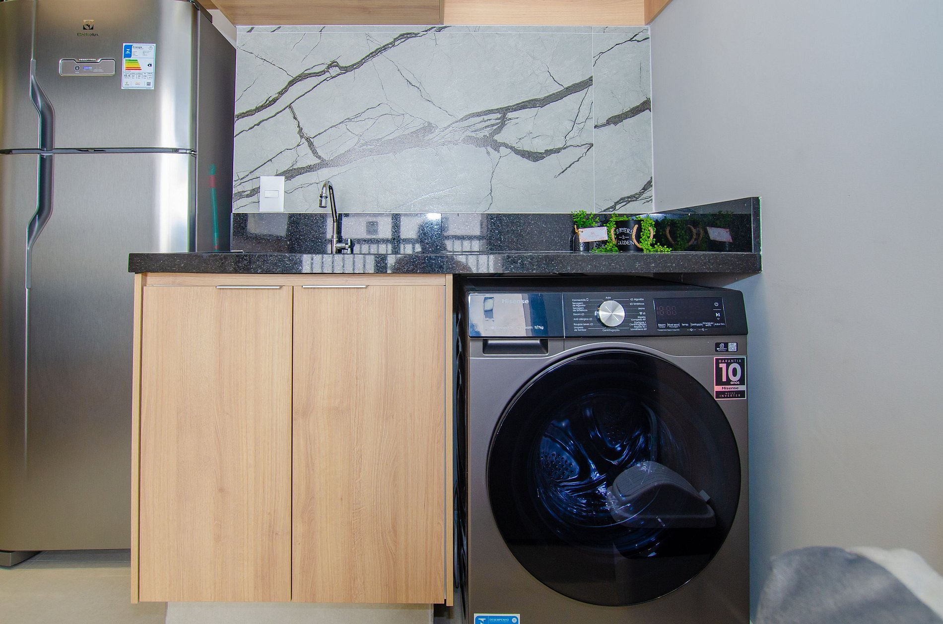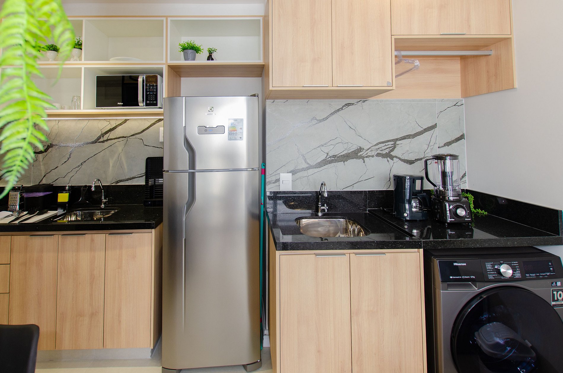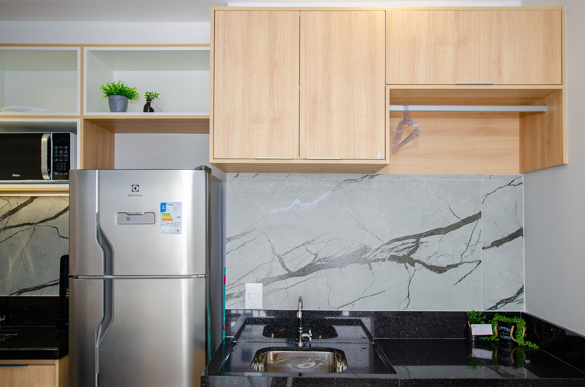 A cozinha é equipada com itens básicos, permitindo o preparo de pequenas refeições e garantindo mais autonomia no dia a dia.