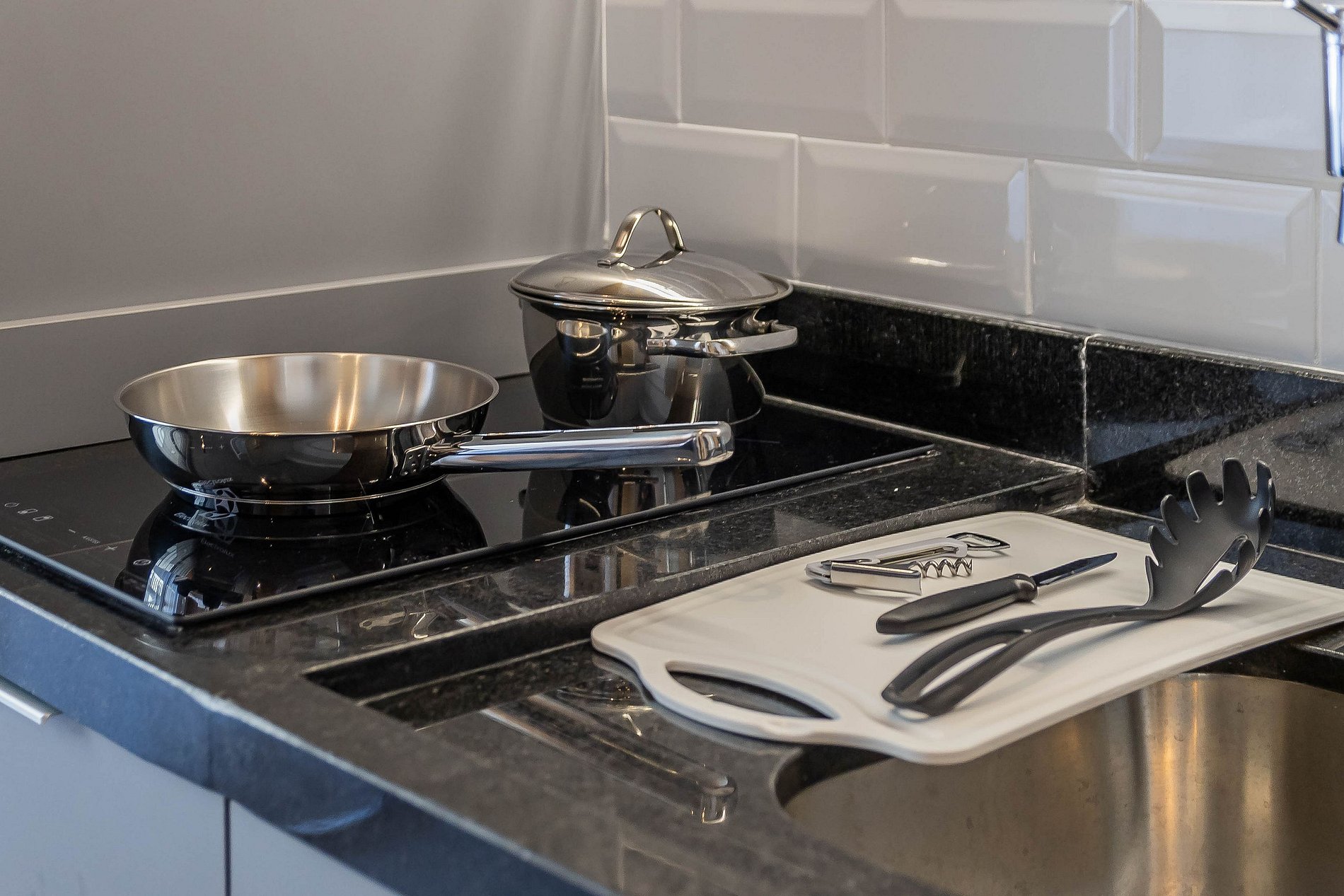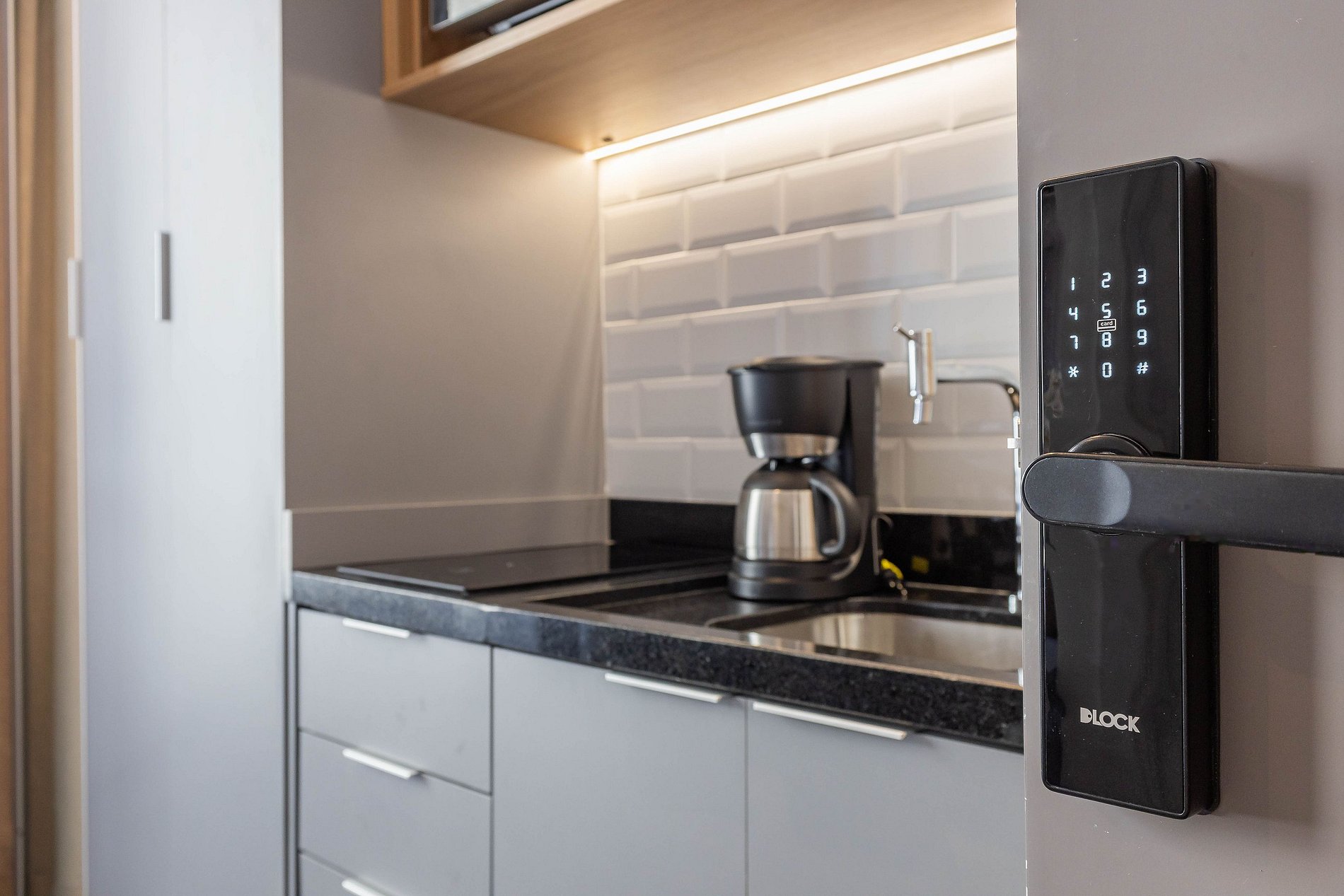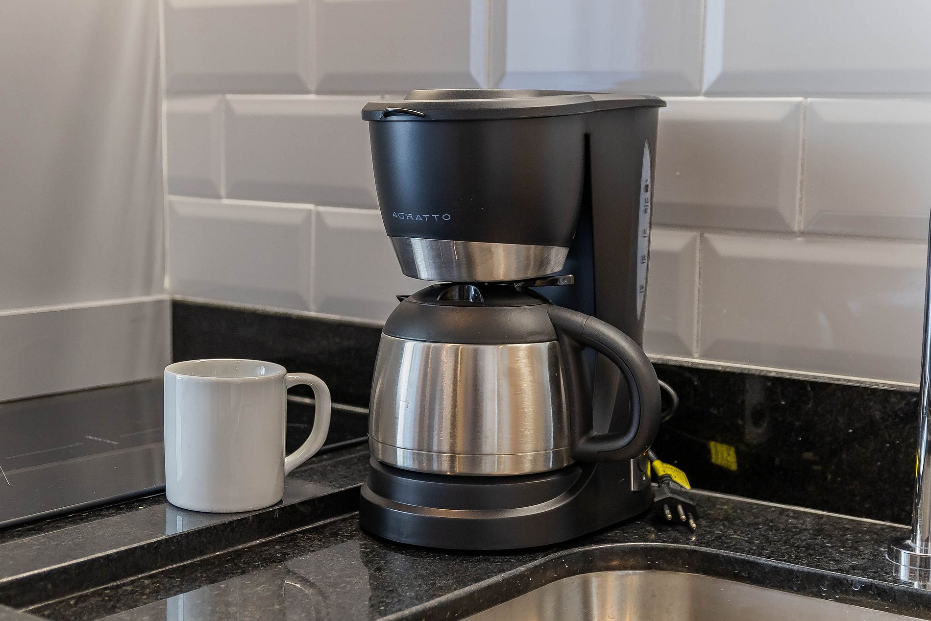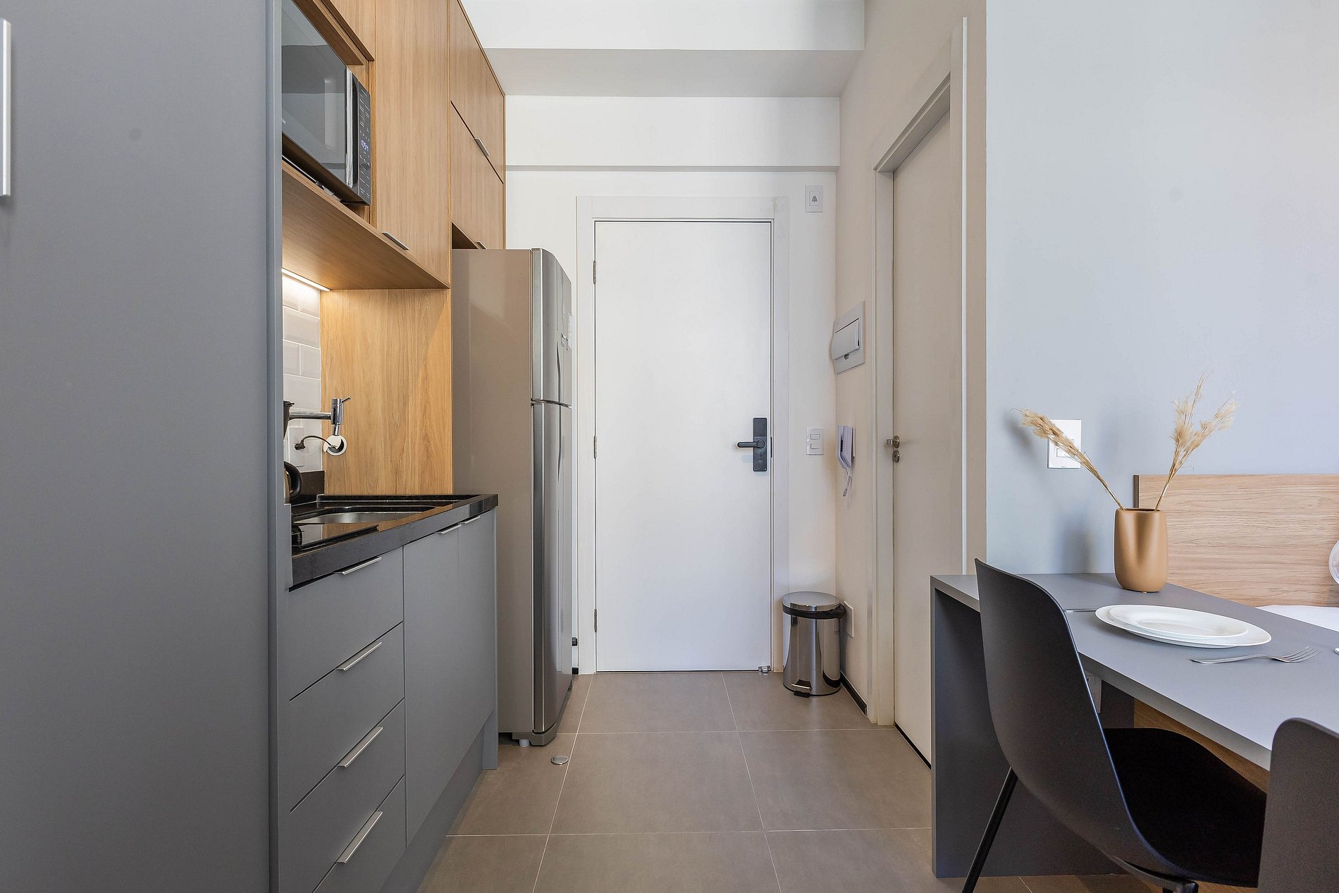 A cozinha equipada com itens básicos permite o preparo de pequenas refeições, garantindo mais autonomia no dia a dia.
