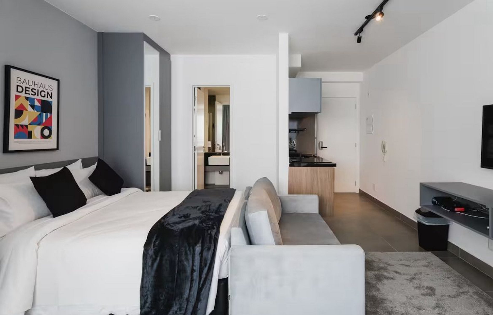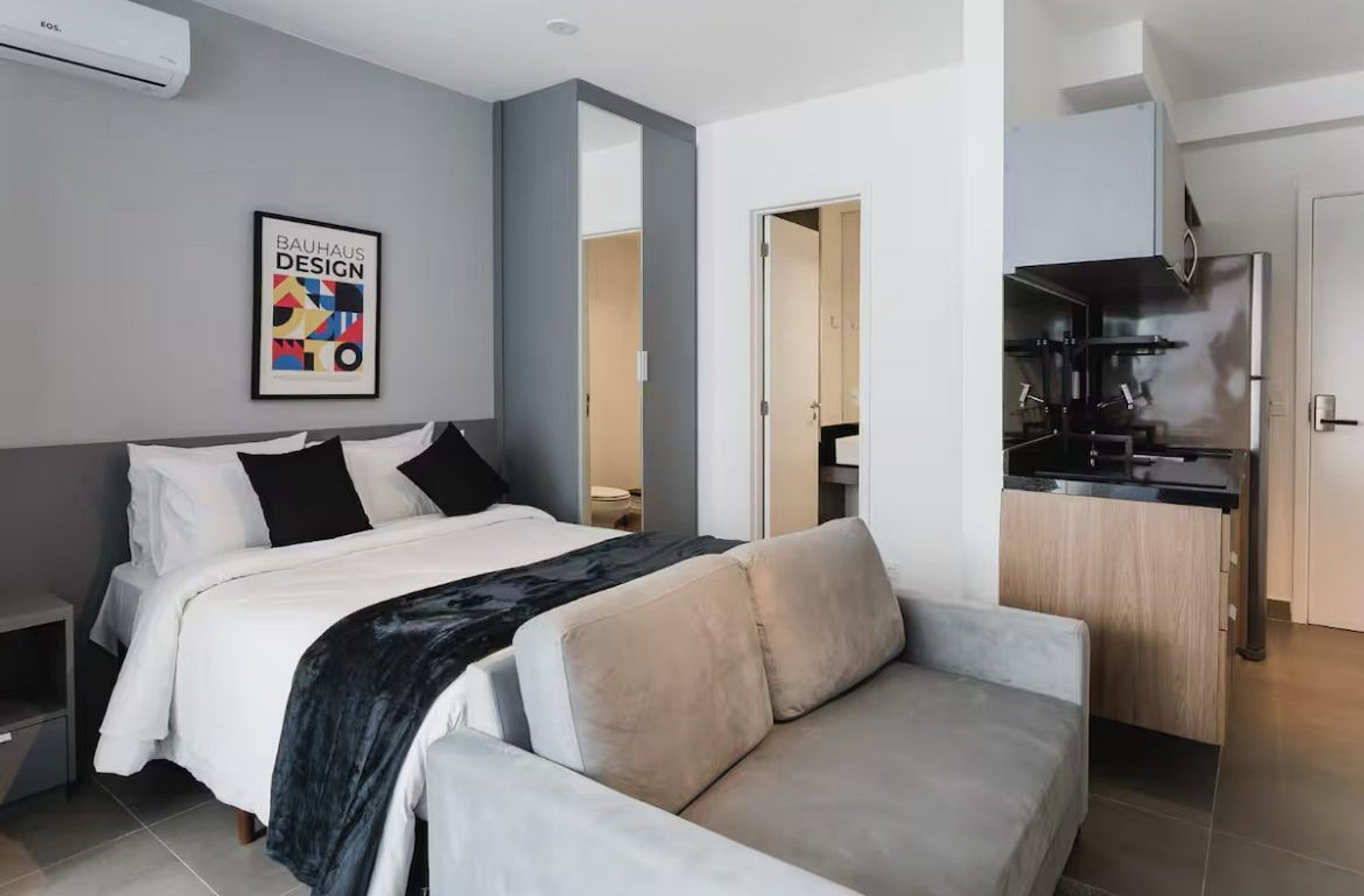 O hóspede também pode contar com as conveniências do prédio: - Piscina - Academia - Lavanderia - Espaço de co-working - 1 vaga na garagem - Portaria 24 horas