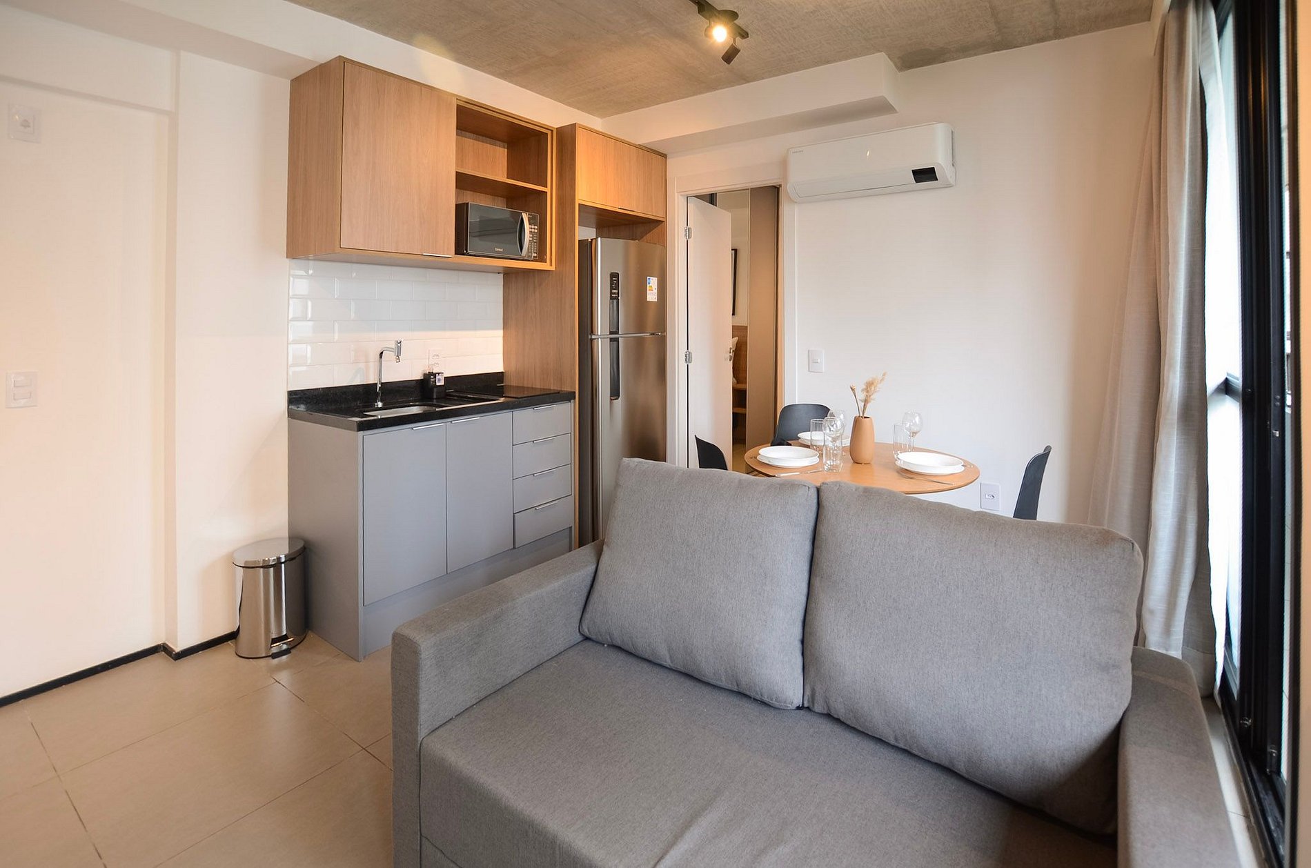 Conta com enxoval de cama e banho (sem reposição ou trocas), cozinha compacta com utensílios para o preparo de pequenas refeições e banheiro privativo.
