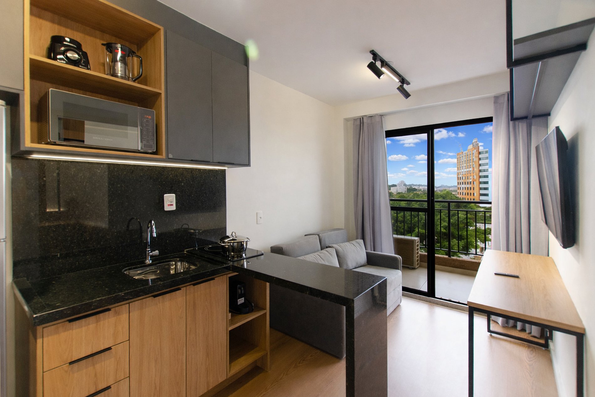 O apartamento foi planejado para trazer praticidade e uma estadia agradável.