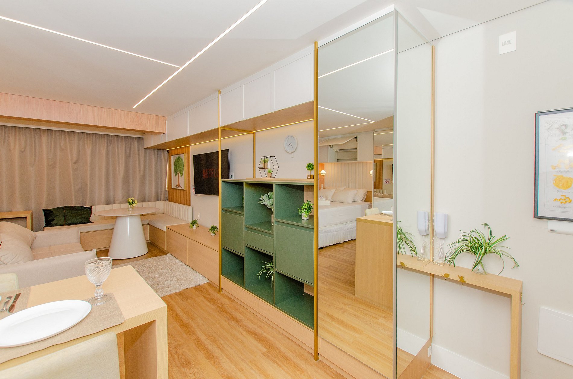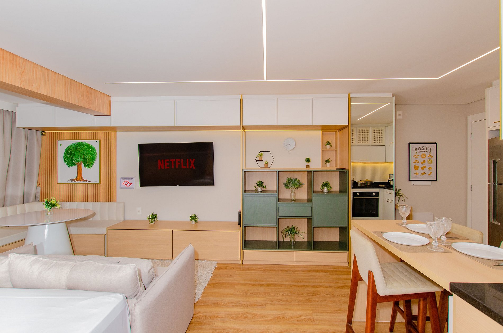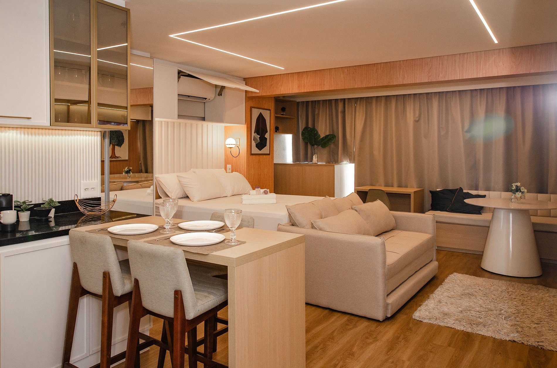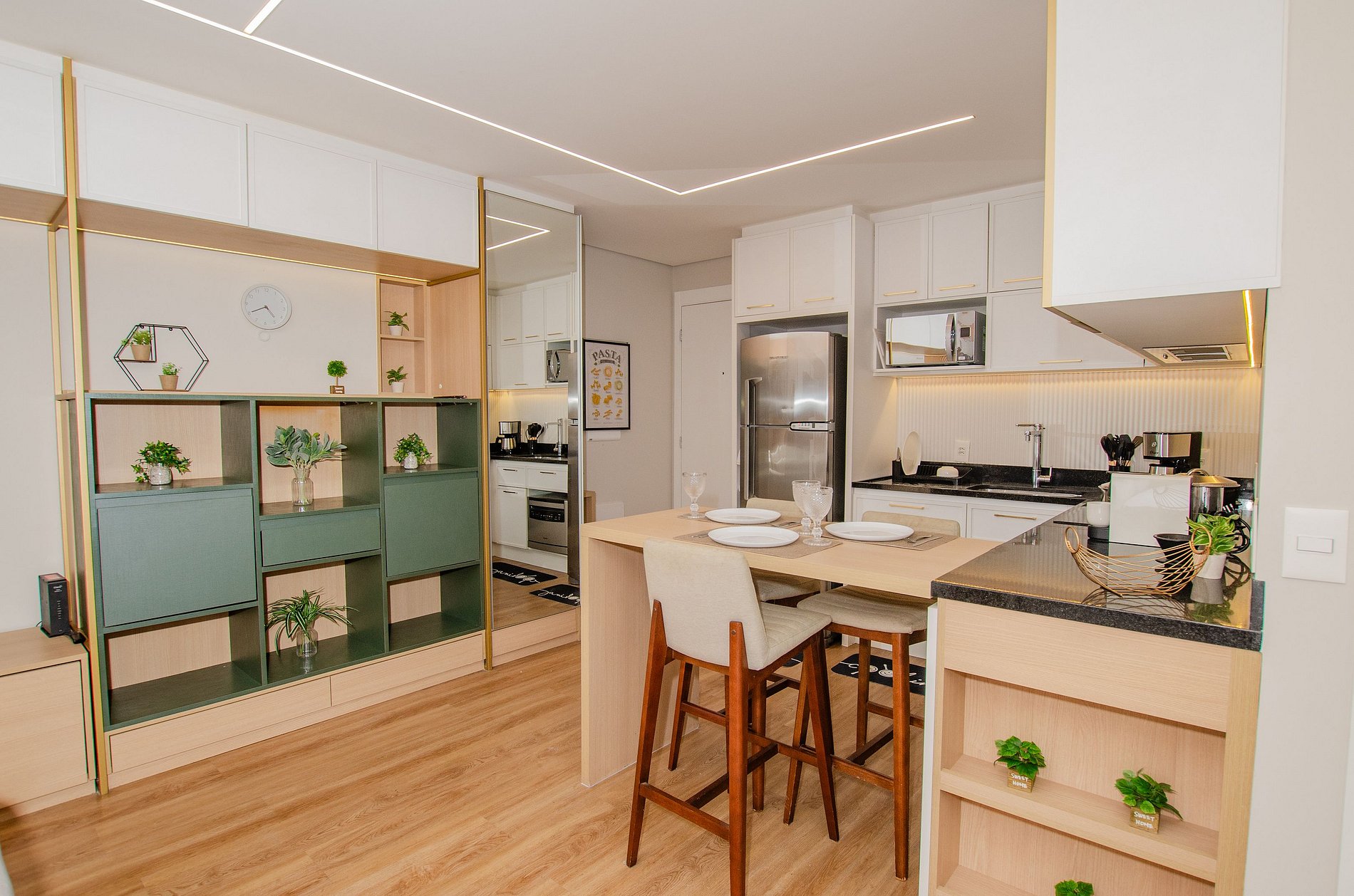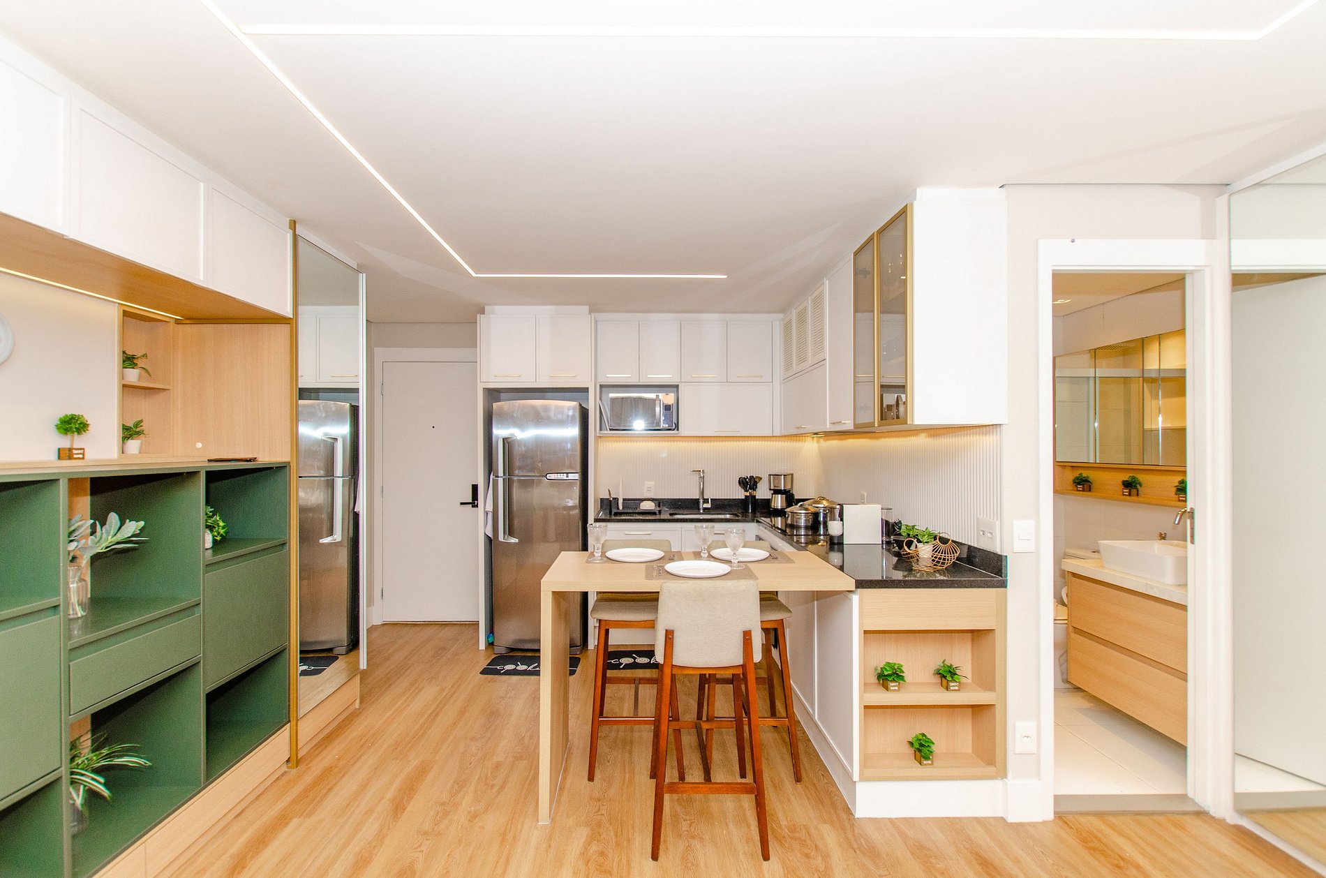 O apartamento foi planejado para trazer praticidade e uma estadia agradável.