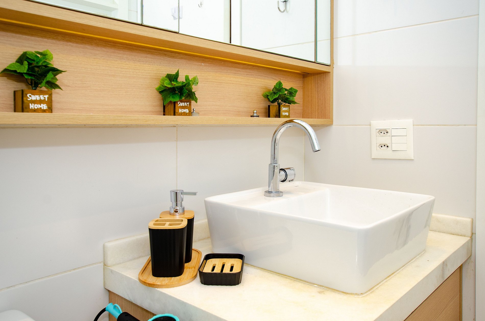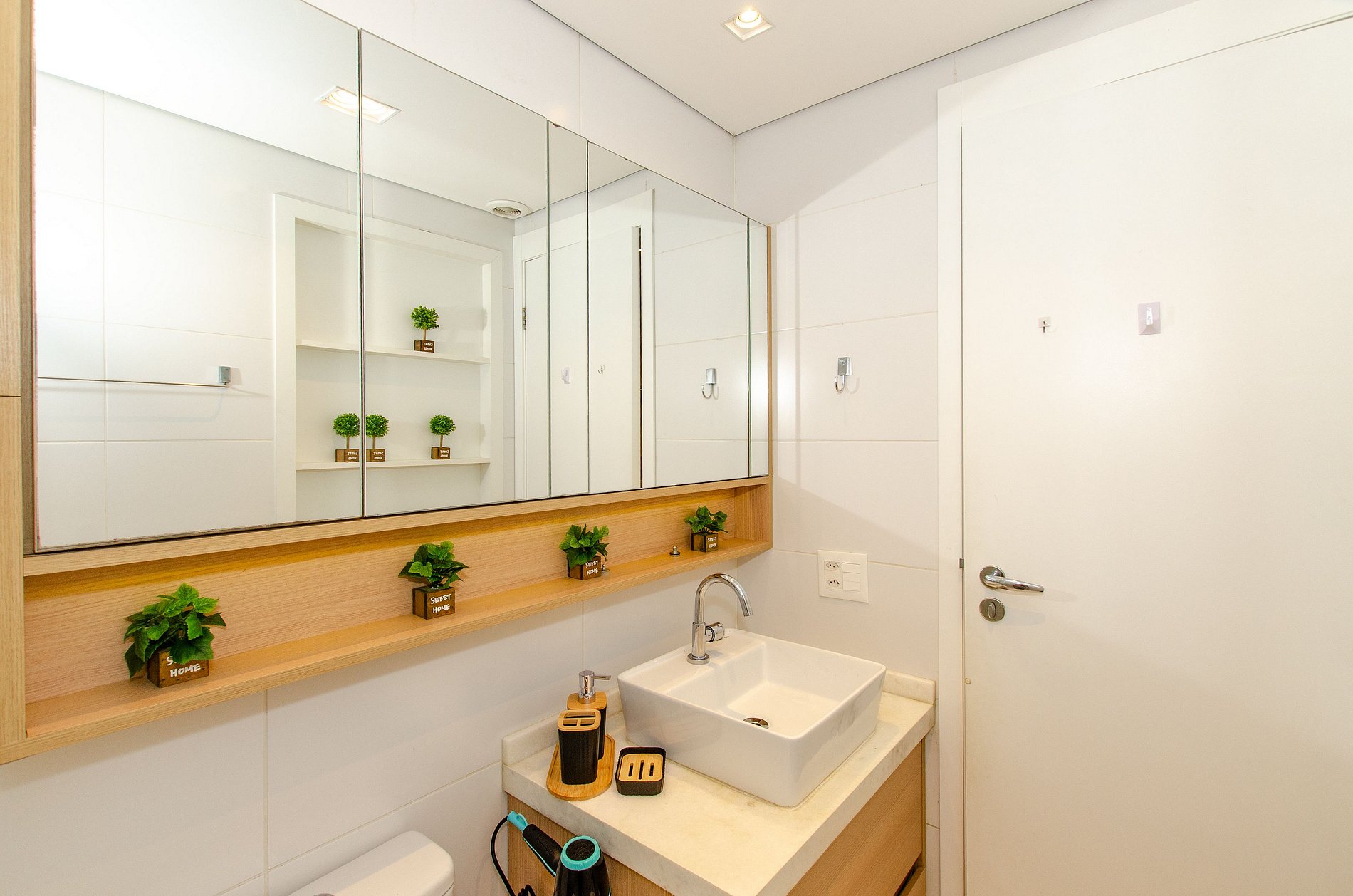 Por fim, o banheiro com secador de cabelo completa os detalhes que tornam sua estadia ainda mais prática.