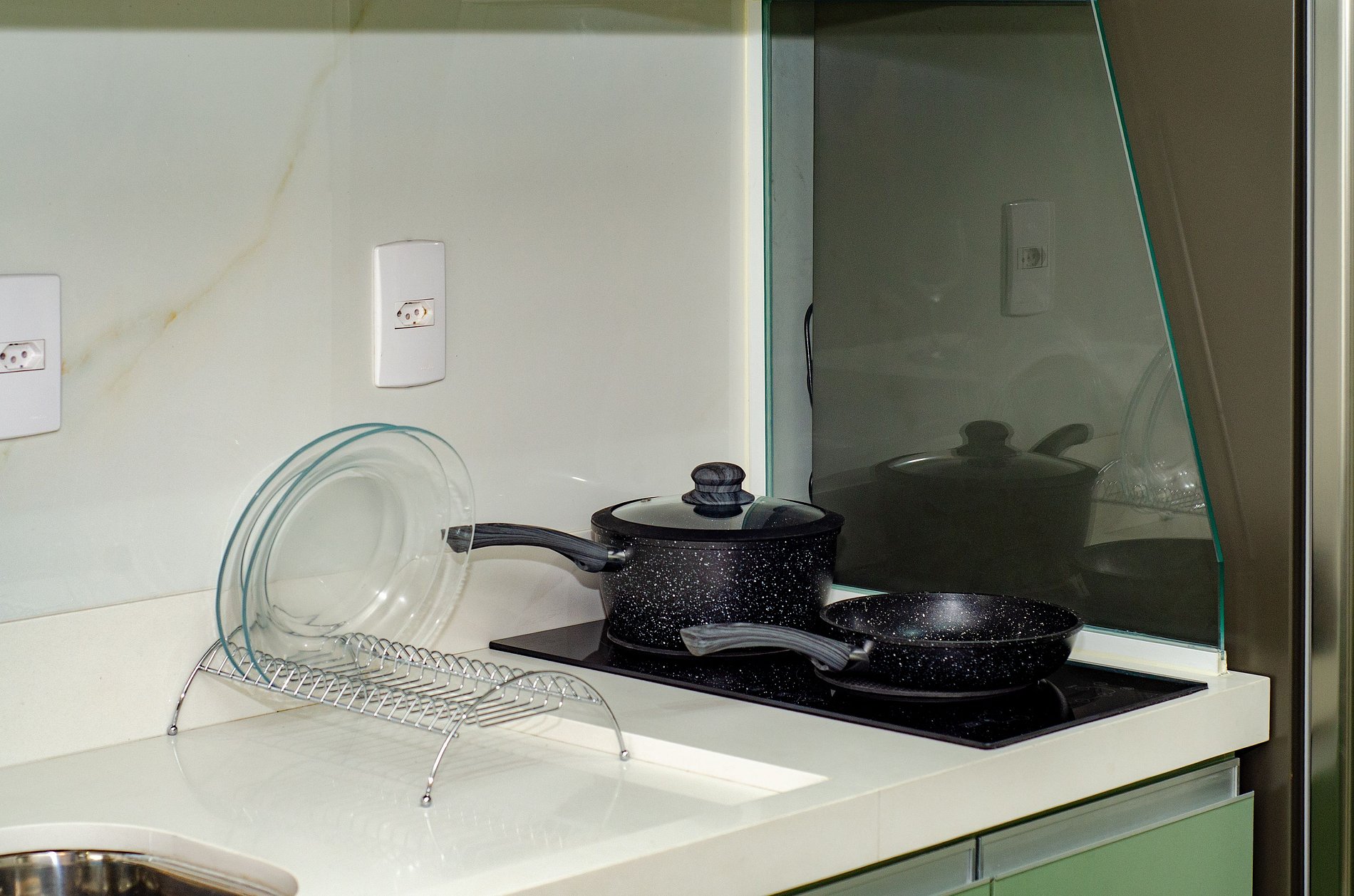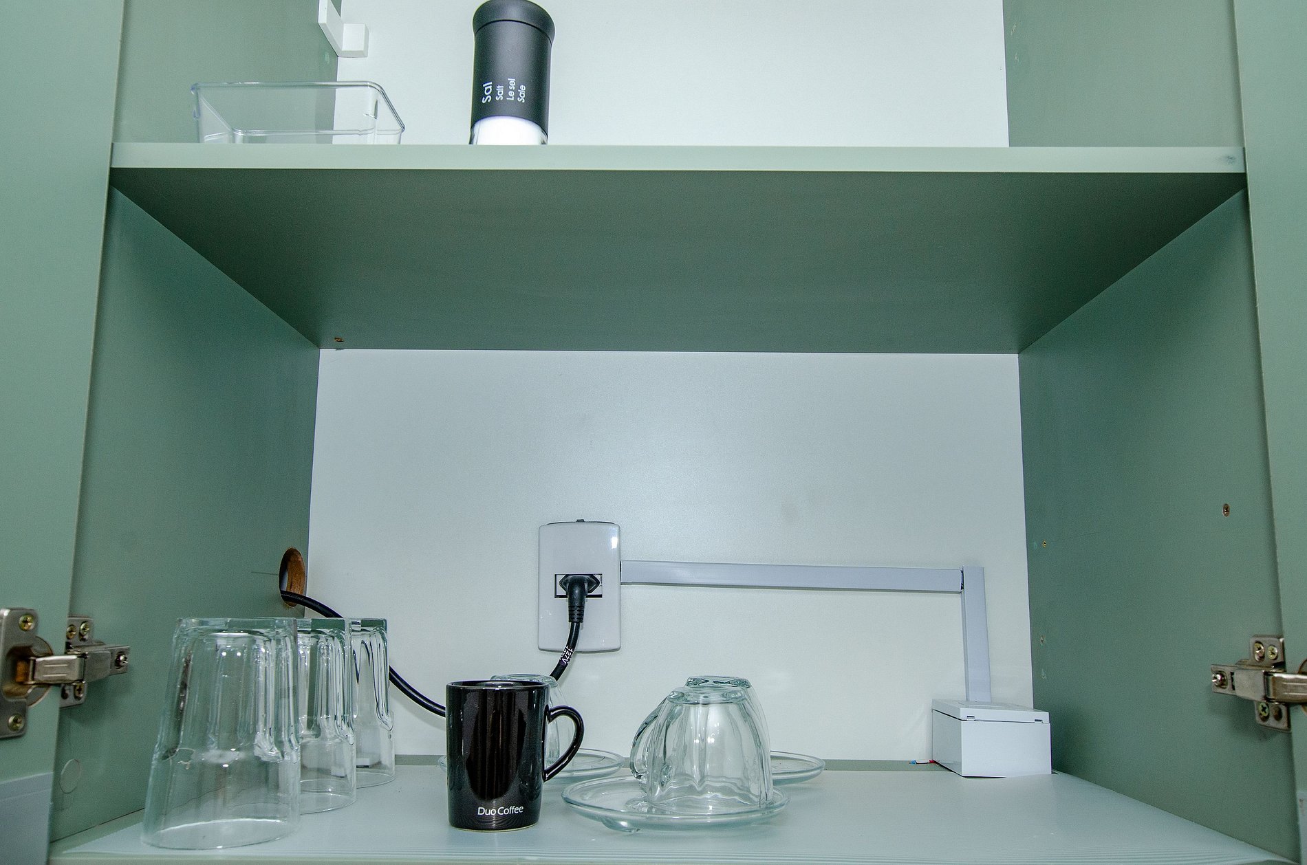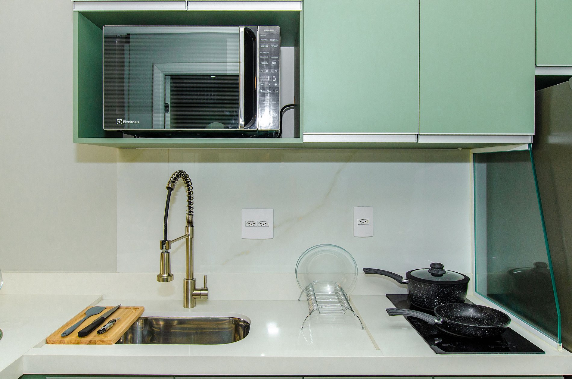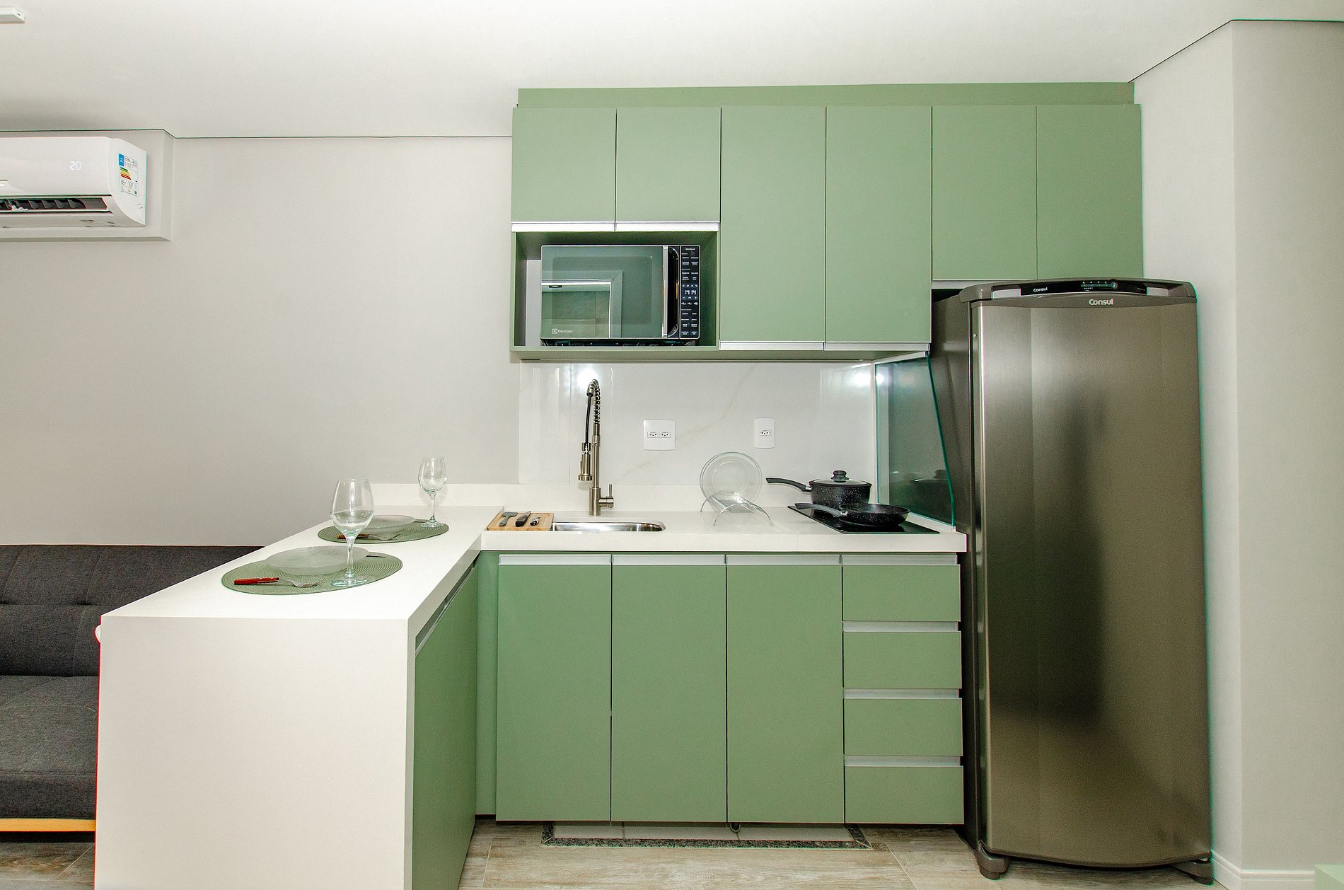 A cozinha equipada com itens básicos permite o preparo de pequenas refeições, garantindo mais autonomia no dia a dia.