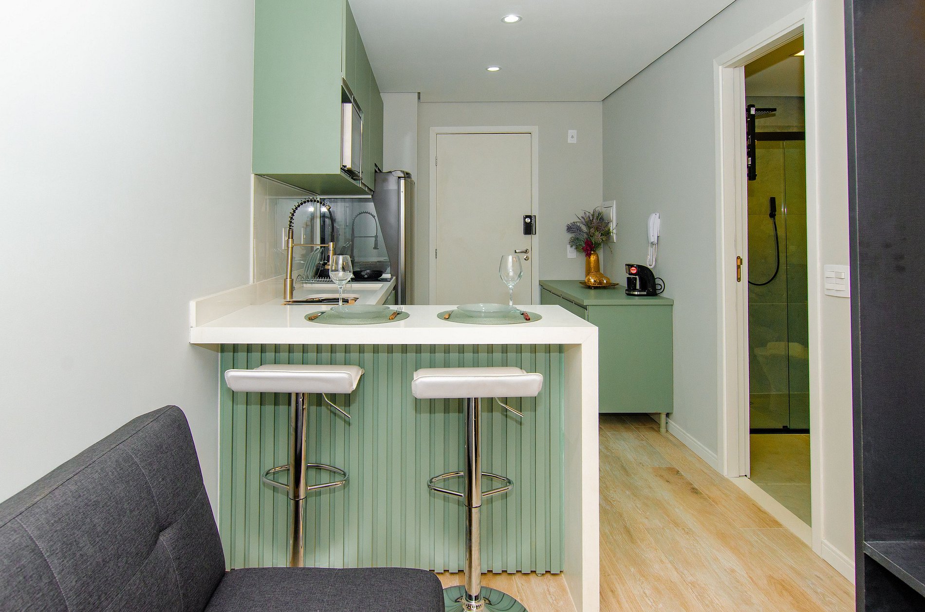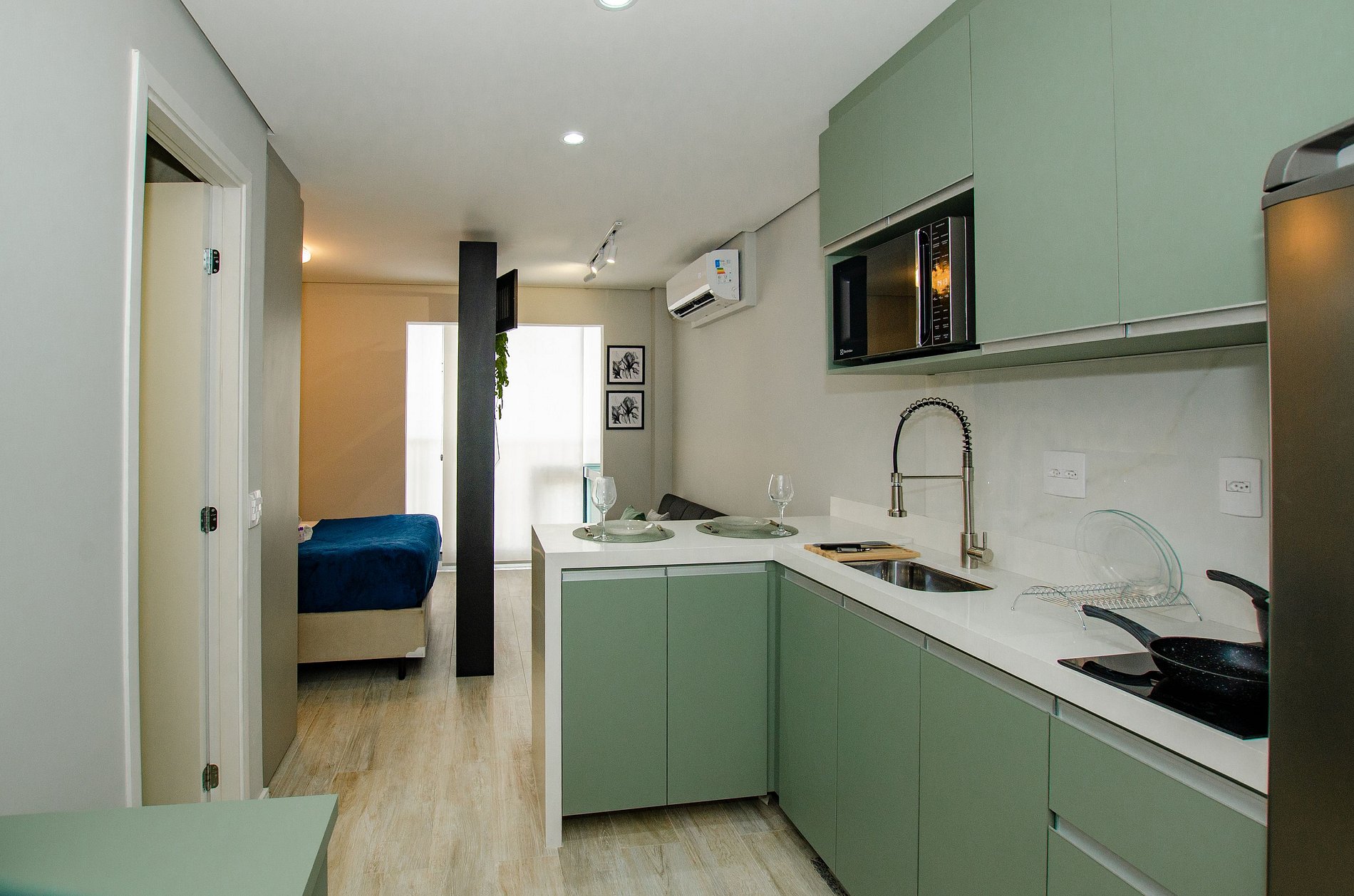 O apartamento foi planejado para trazer praticidade e uma estadia agradável.