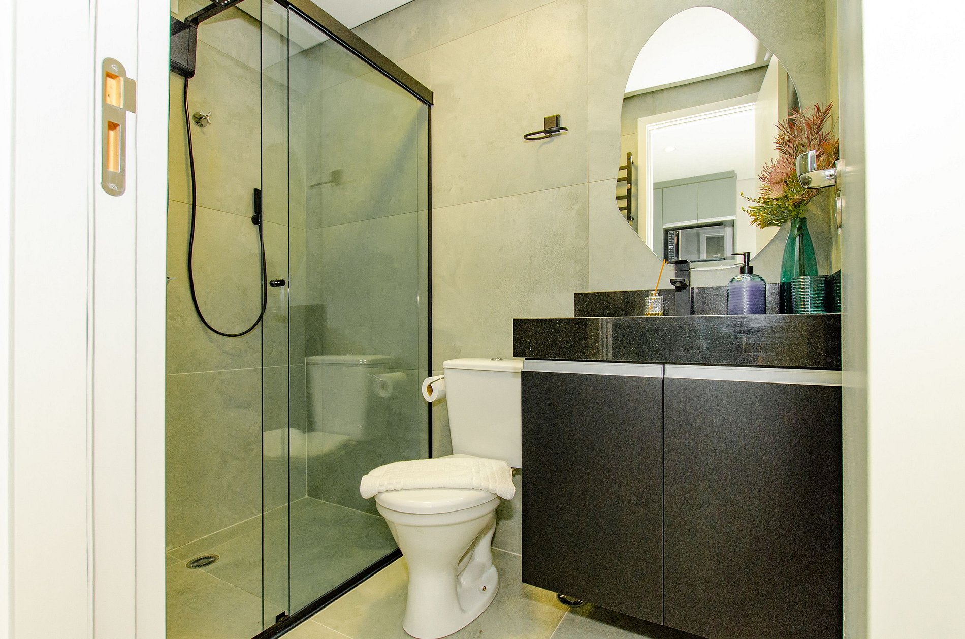 Por fim, o banheiro com secador de cabelo completa os detalhes que tornam sua estadia ainda mais prática.