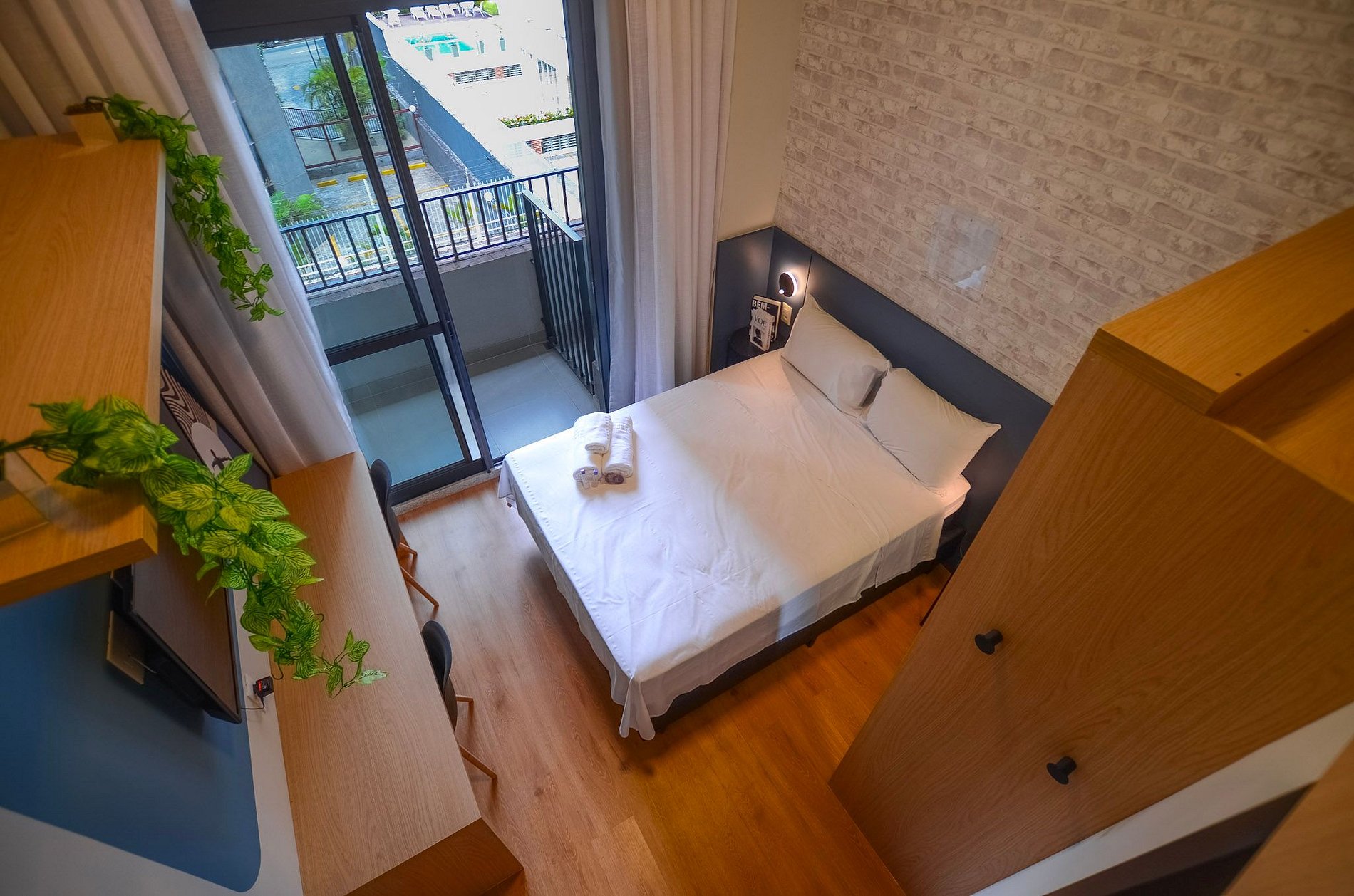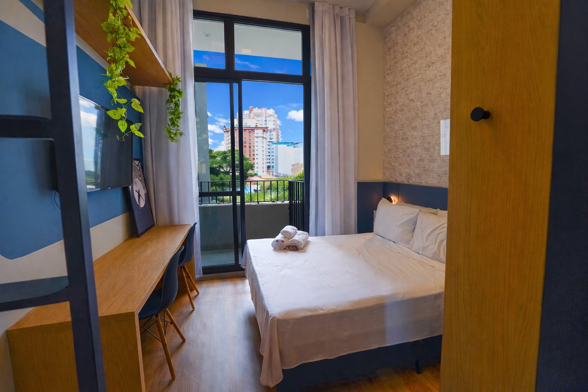 O condomínio oferece pequena piscina, academia, coworking e lavanderia OMO, trazendo mais praticidade e conforto durante a estadia.