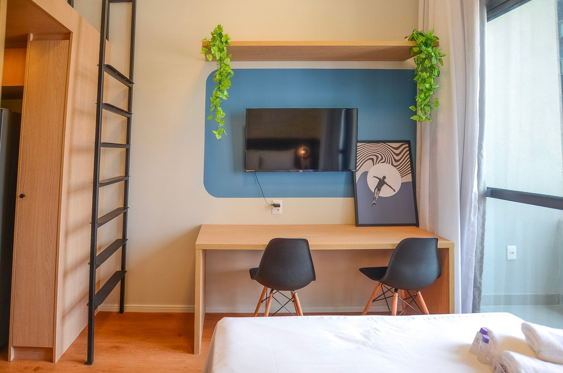Oferecemos enxoval de cama e banho no início da estadia (sem trocas ou reposições). O studio conta ainda com Wi-Fi de 250MB e TV Smart (não disponibilizamos login para plataformas de streaming).