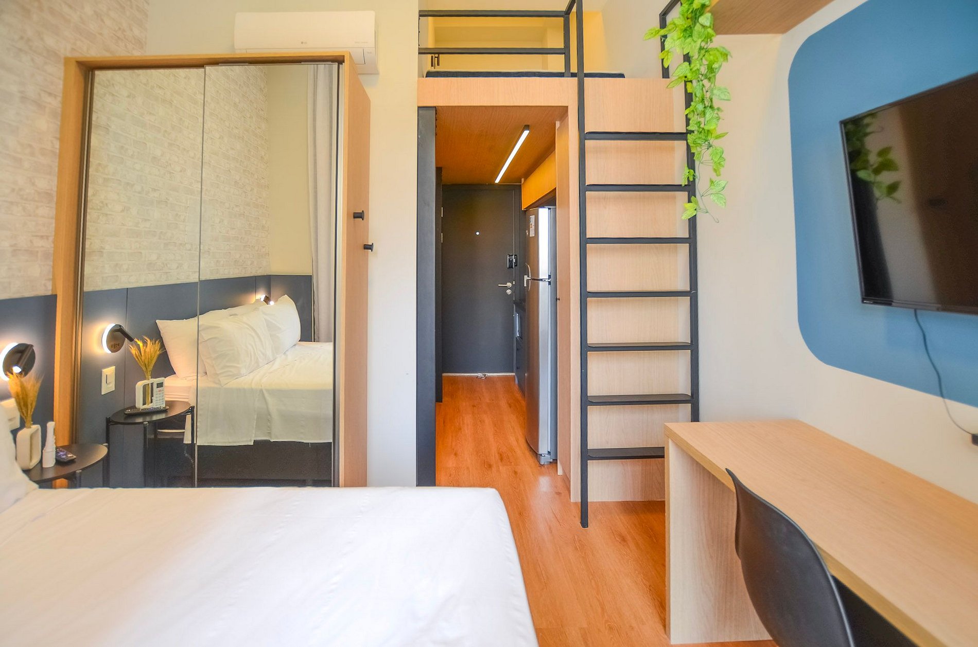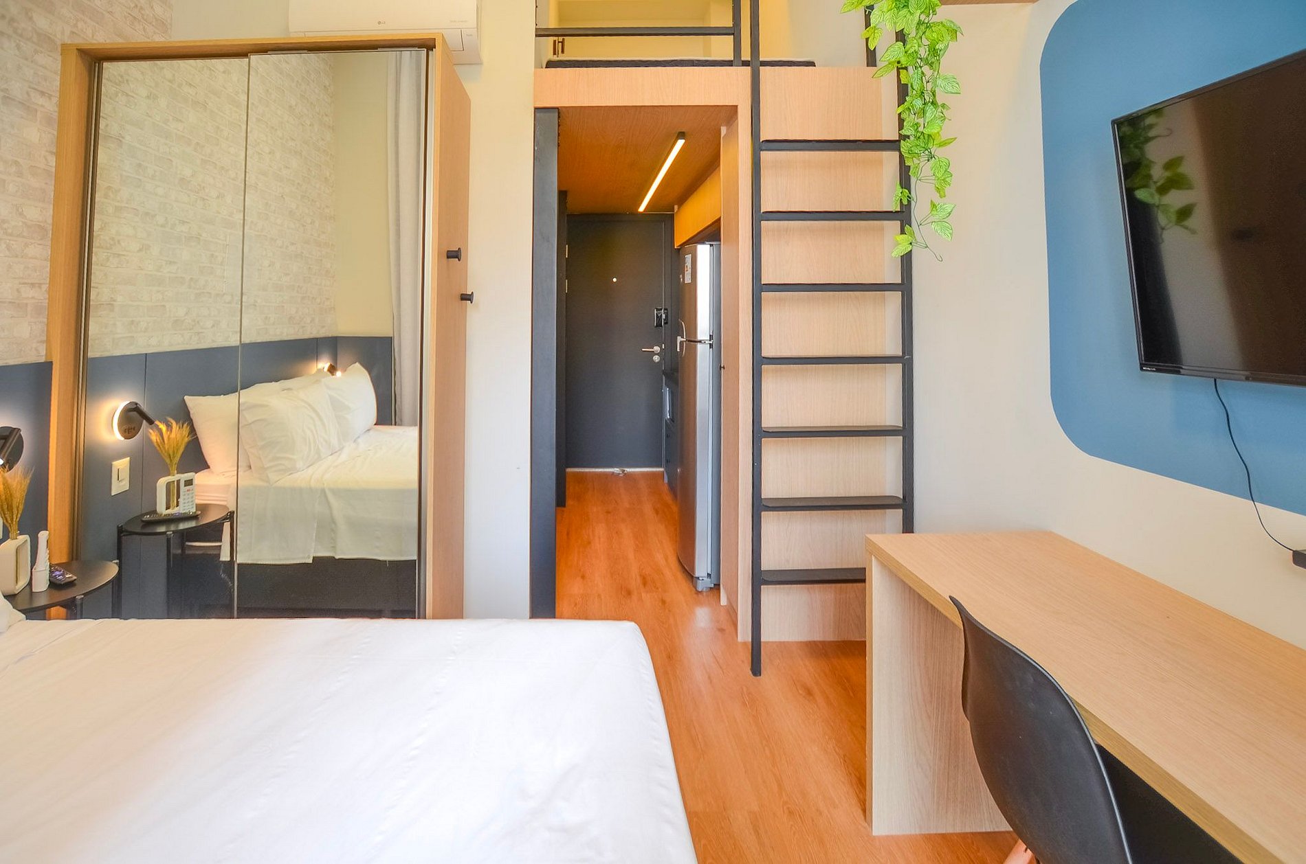 Studio moderno com mezanino, ideal para quem busca praticidade e ótima localização em São Paulo.