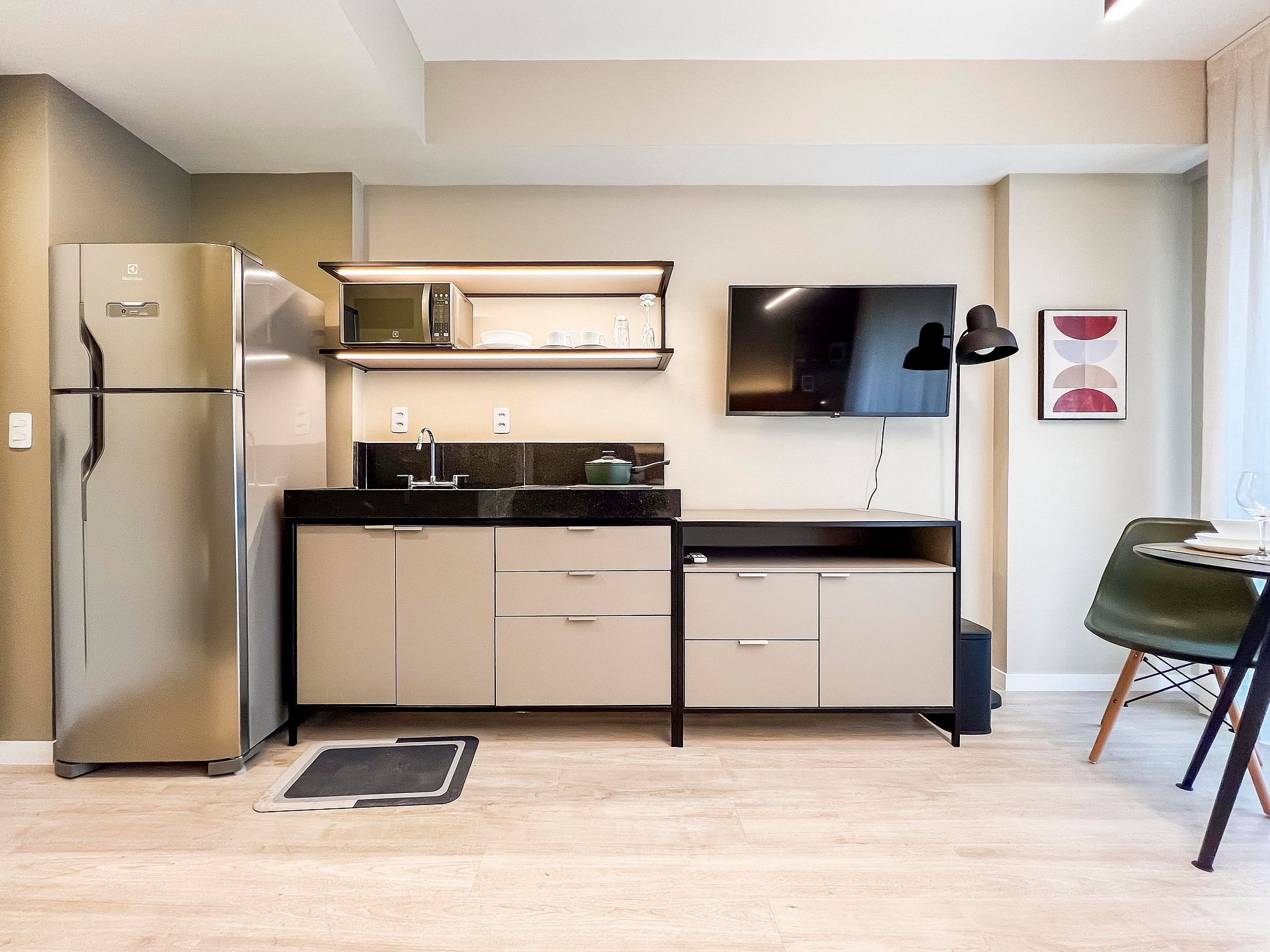 Venha aproveitar um apartamento completo e moderno, com fechadura eletrônica, sacada, cozinha equipada, ar condicionado, Wi-Fi de alta velocidade, Smart TV. (não disponibilizamos login de acesso nas plataformas de streaming)