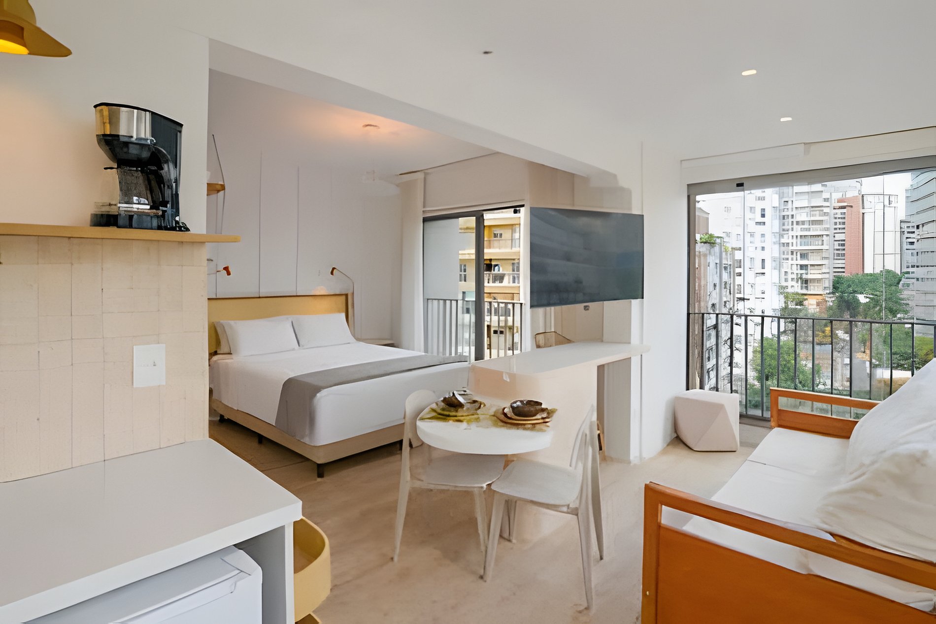 Aproveite uma vista panorâmica da cidade! Acomodando até 3 pessoas, nosso espaço é completo, funcional e acolhedor. Seja para passar alguns dias ou semanas, ele supre todas as necessidades.