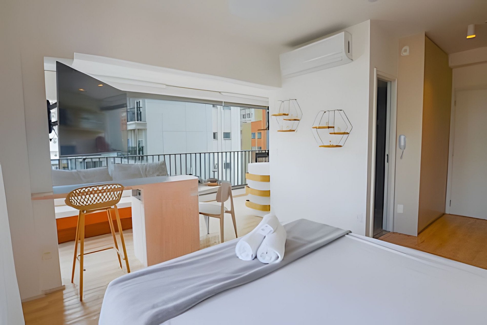 O apartamento também dispõe de ar-condicionado.