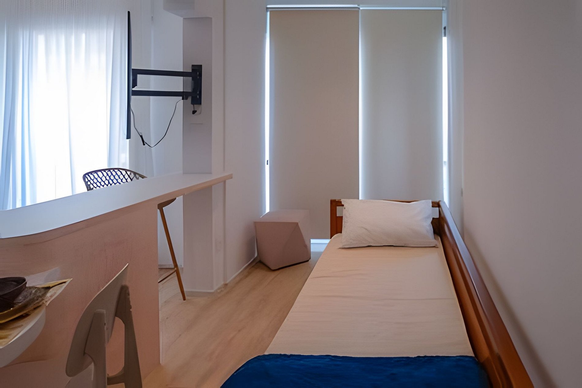 Acomodando até três pessoas, o espaço oferece uma cama queen size e cama de solteiro que também pode ser usada como sofá cama. Fornecemos enxoval de cama e banho para sua estadia, mas trocas ou reposições tem custo extra