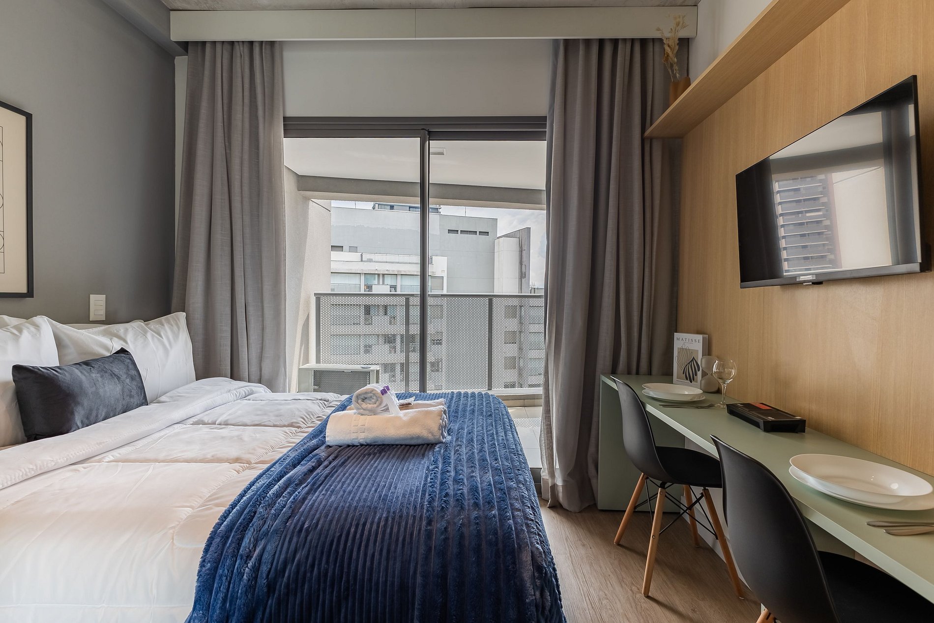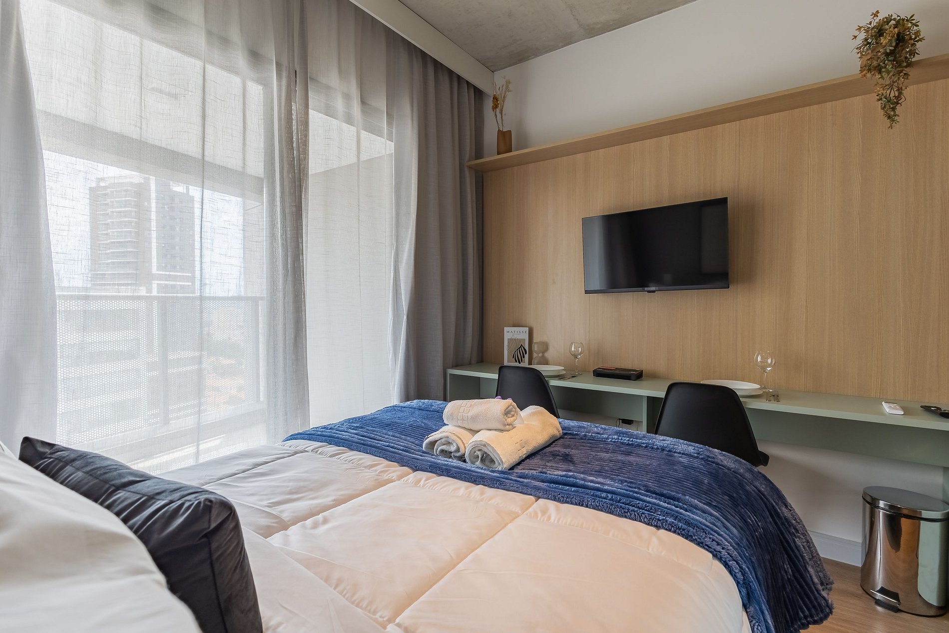 Você conta com internet Wi-Fi de 250MB e TV Smart, lembrando apenas que não disponibilizamos login para as plataformas de streaming.